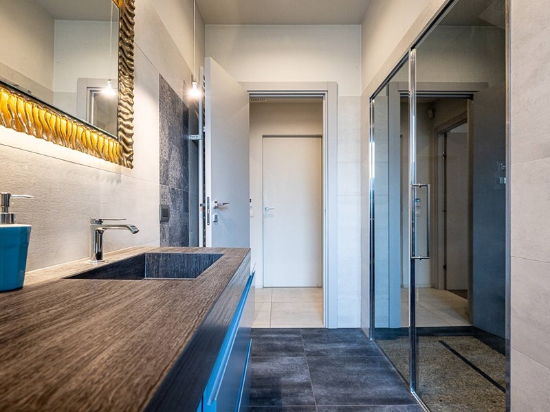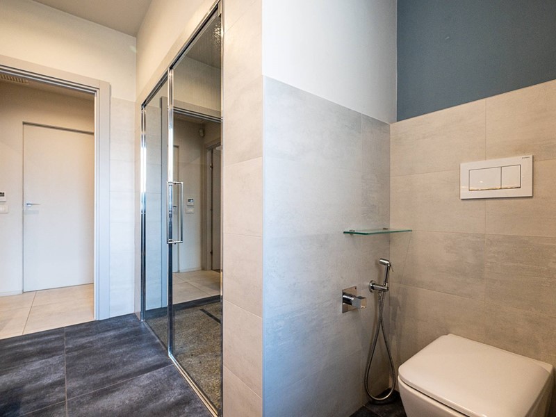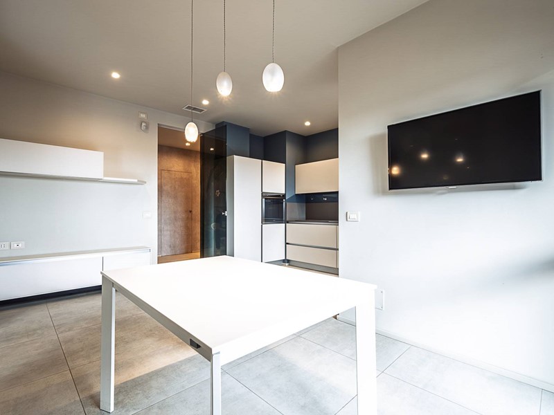 L'alloggio si presenta completamente ristrutturato con materiali di altissimo livello, pavimenti insonorizzati, antifurto volumetrico e perimetrale con comandi da remoto, portoncino blindato con doppia serratura di sicurezza, tapparelle elettriche, aria condizionata canalizzata e isolamento termico, bagno turco con cromoterapia e un sistema centralizzato di depurazione e addolcimento dell'acqua.