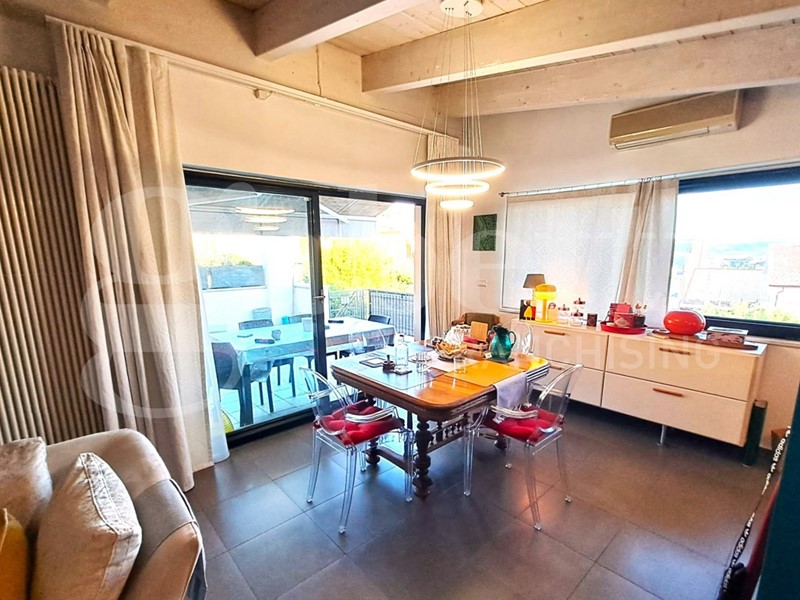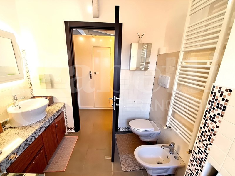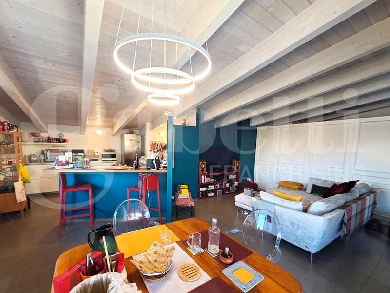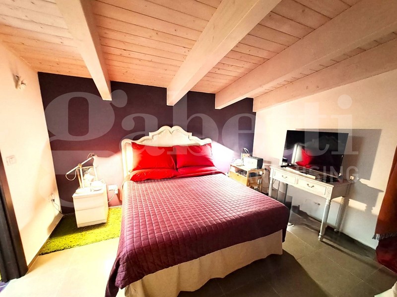 Impreziosisce il tutto la presenza di travi in legno a vista che rendono l'ambiente caldo ed suggestivo.