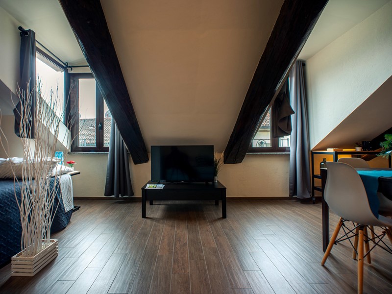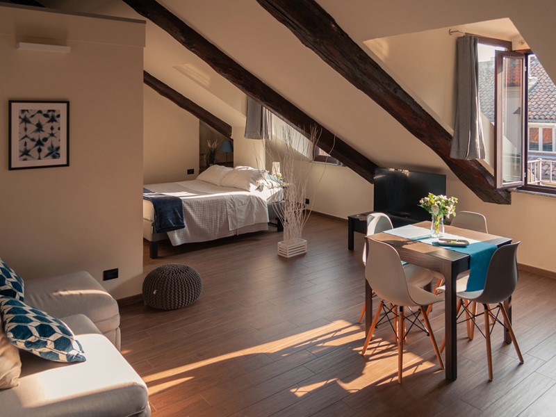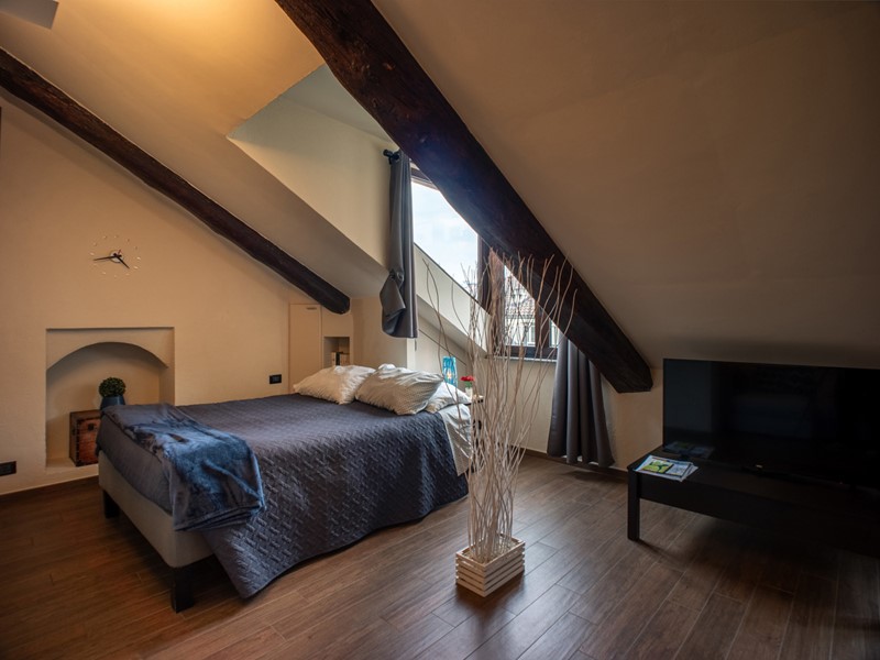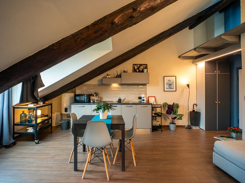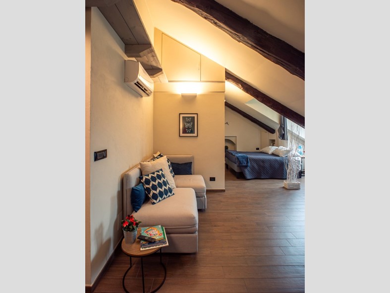 In palazzo d'epoca dotato di ascensore e recentemente rivisto nelle parti comuni, proponiamo in vendita una luminosa mansarda completamente ristrutturata e arredata.