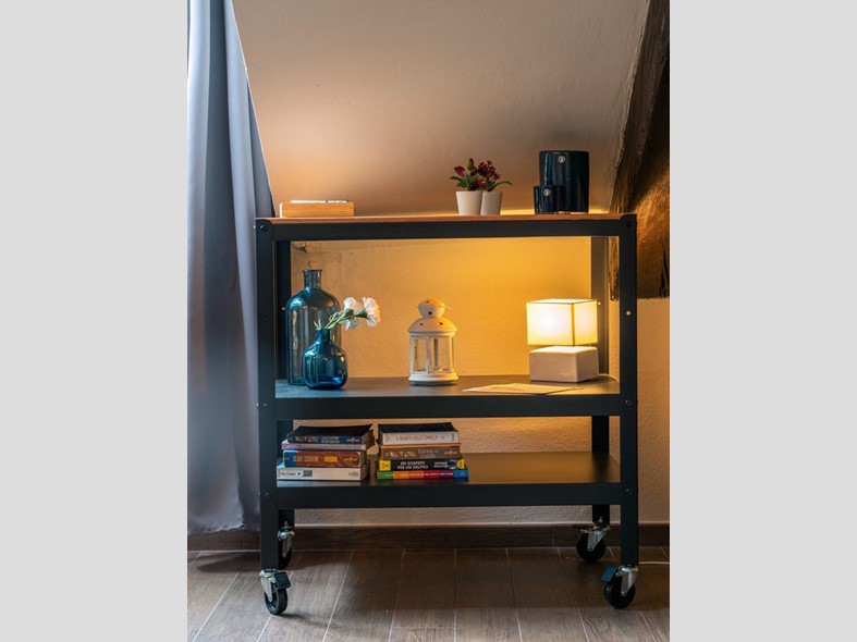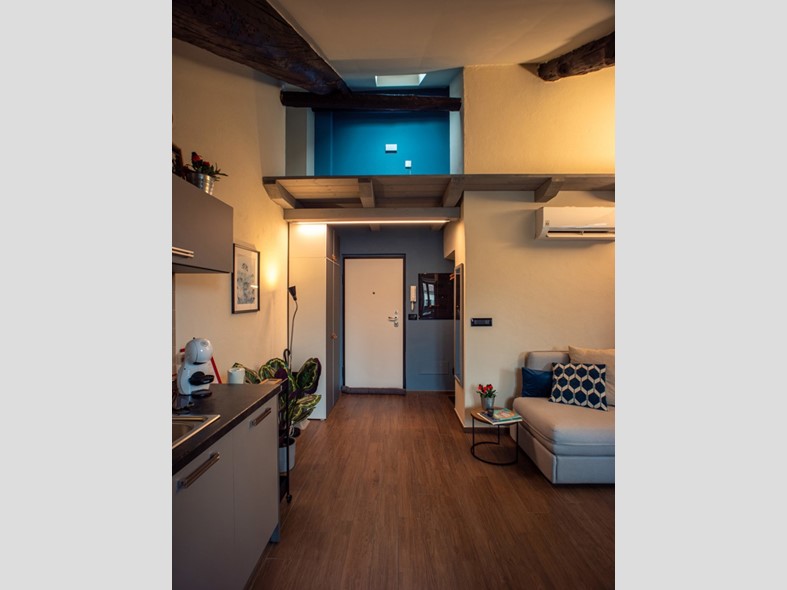 L'immobile si compone di una zona giorno con angolo cottura, zona notte e bagno, ed dotato di arredi su misura e di un pratico soppalco accessibile tramite scala a pioli.