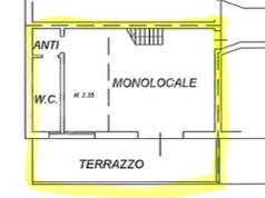L'ingresso si apre su un luminoso soggiorno con angolo cottura. Un comodo disimpegno ad uso lavanderia e un bagno finestrato con doccia completano il piano principale.