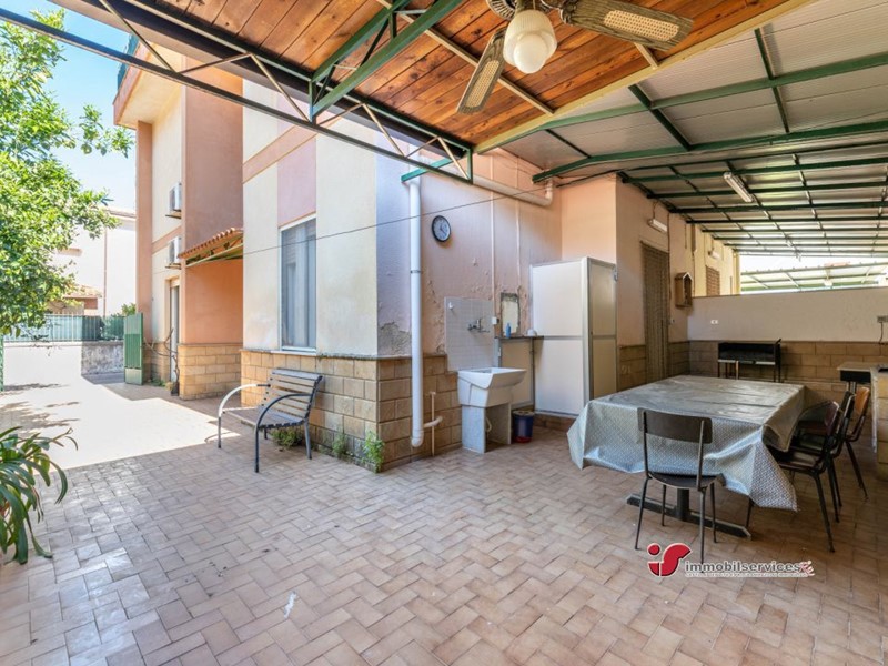 Porzione di Bifamiliare in vendita di 119 mq ca., sita a Mondello in Via Pazienza, facente parte di un Residence del '67. L'immobile è composto da: ingresso, cucina abitabile con uscita su Terrazzo di 50 mq ca., soggiorno con apertura sul Giardino di 60 mq ca., e apertura su strada comune all'interno del comprensorio, bagno con finestra e ripostiglio; scala interna con la quale si accede al 1° Piano, composto da: 2 camere matrimoniali, di cui una con finestra e l'altra con balcone, cameretta con finestra, ripostiglio e bagno con finestra. Solaio sovrastante, costituito da un'ambiente verandato con tettoia. Libera su 3 lati, con Doppio Posto Auto Scoperto. Spese condominiali mensili and euro; 15,00 ca. Ape G.