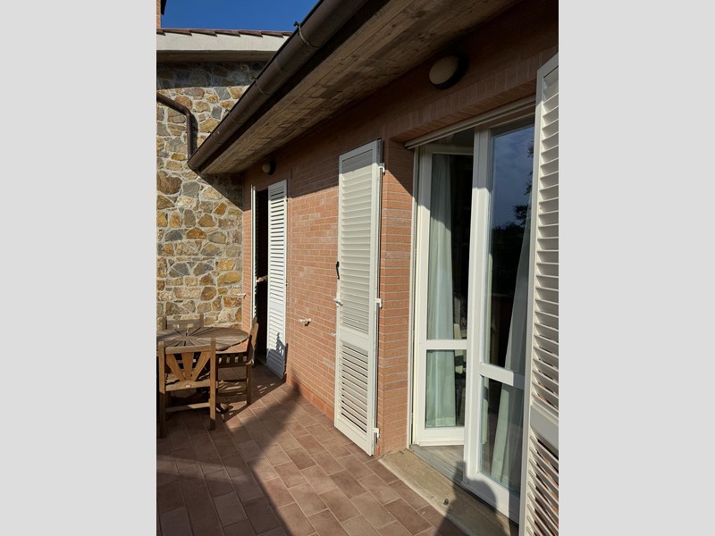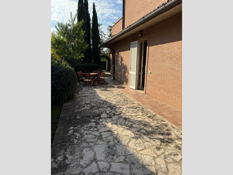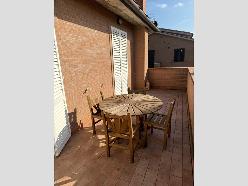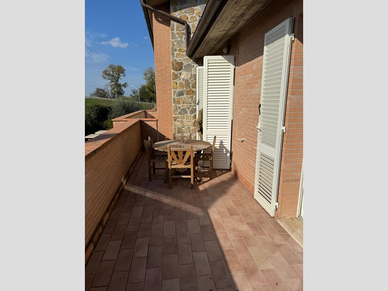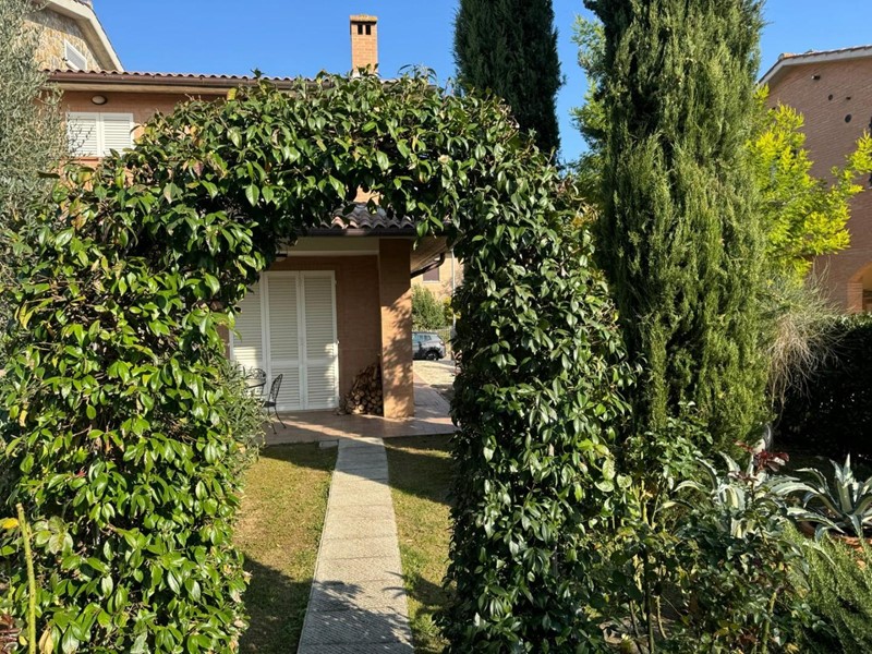 In zona tranquilla e residenziale a Monteroni d'Arbia, vendesi splendida Terratetto a schiera angolare di recente costruzione di 110 mq libera su tre lati, disposta su due livelli con doppio ingresso indipendente da cancello automatico . Al piano terra è presente un luminoso soggiorno con camino, sala da pranzo, una spaziosa cucina e bagno con doccia. Al piano superiore troviamo tre camere da letto, di cui due matrimoniali ed una singola attualmente adibita a studio, e un altro bagno finestrato; da una delle camere padronali è possibile raggiungere la terrazza abitabile panoramica. L'immobile ha un giardino privato di 400 mq circa ottimamente distribuito e illuminato, un resede mattonellato dove è possibile parcheggiare due automobili e un loggiato comunicante con il soggiorno. Completa la proprietà un garage di circa 18 mq. dove sono presenti gli impianti termoidraulici e dal quale si accede ad ampio vuoto tecnico utilizzabile come cantina.