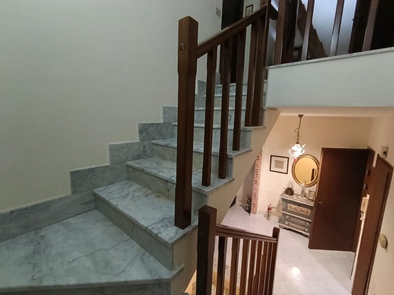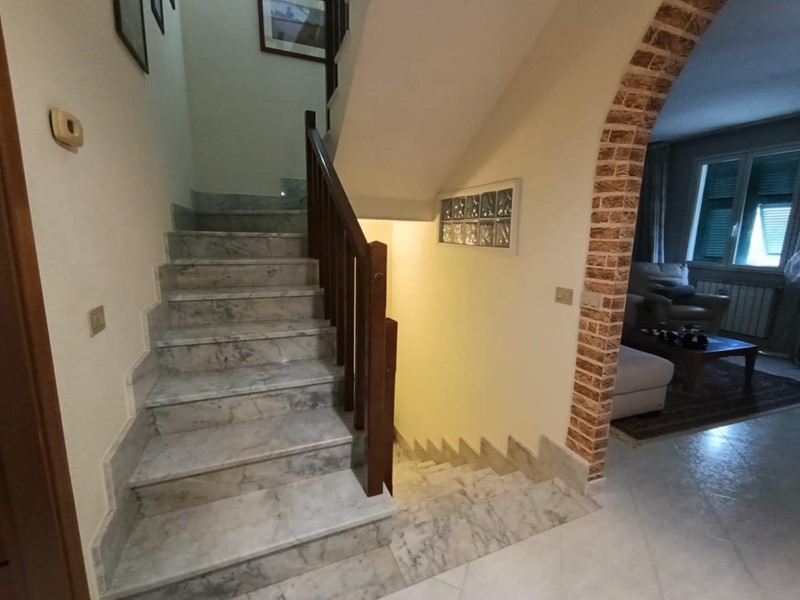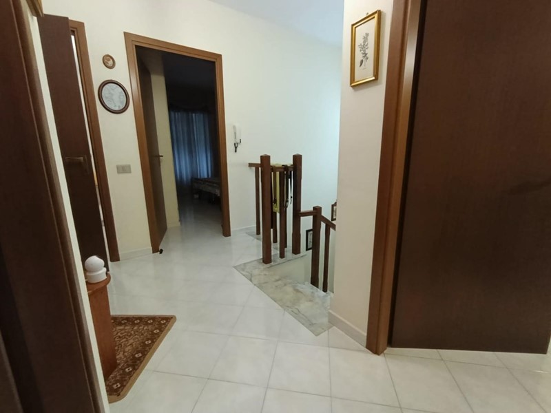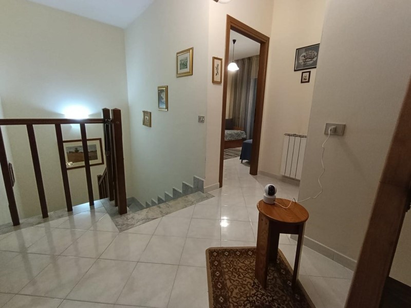 L'immobile di sviluppa su tre livelli, l'ingresso è nel corridoio che porta all'accesso del garage e ad un ampio locale attualmente adibito a zona studio/relax, salendo le scale ci troviamo nella zona giorno composta da una spaziosa cucina abitabile, dalla quale si accede al piccolo giardino di proprietà, doppio salone con balcone e primo bagno, al piano superiore troviamo tre camere da letto di cui una matrimoniale e il secondo bagno.