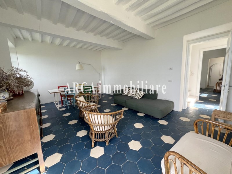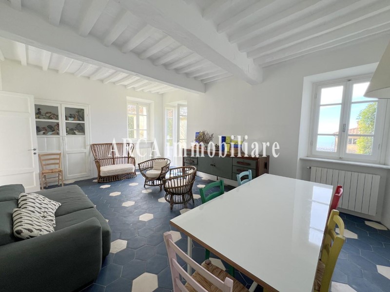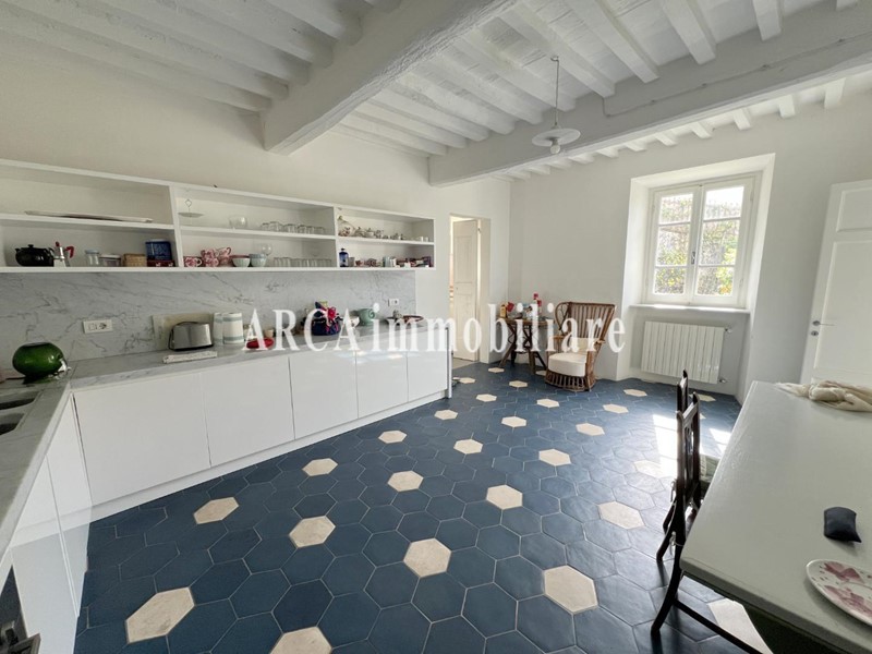 PIETRASANTA Collina Vista Mare, tipica bella villa toscana (in bifamiliare), offre un'atmosfera accogliente e raffinata, molto luminosa con bellissima vista mare. La proprietà è molto ampia ed esattamente 250 mq. completamente ristrutturati da qualche anno e disposti su più livelli oltre una cantina-lavanderia. L'immobile ha un doppio ingresso ed è composto da una grande cucina, sala pranzo, soggiorno, 4 camere di cui 2 con bagno privato, altri 2 bagni, studio. GIARDINO 1.200 mq.