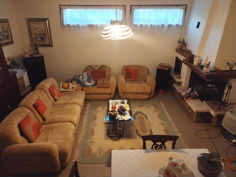 Rif. M 55. Mirteto, villetta a schiera in buono stato di manutenzione con piccolo giardino, garage e taverna. L'immobile si sviluppa su tre livelli, con zona giorno composta da cucina abitabile, sala e bagno di servizio, piano notte con 3 camere, bagno e balcone. Al piano seminterrato, taverna con camino, garage e locale lavanderia