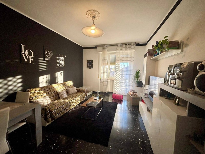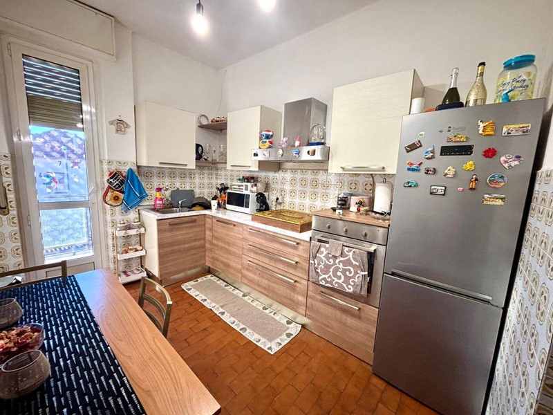 Ingresso su ampio corridoio, salone grande con uscita diretta su ampio balcone, cucina abitabile anch'essa con uscita diretta sul balcone, 2 camere da letto ampie (di cui una matrimoniale con balcone privato), bagno finestrato.