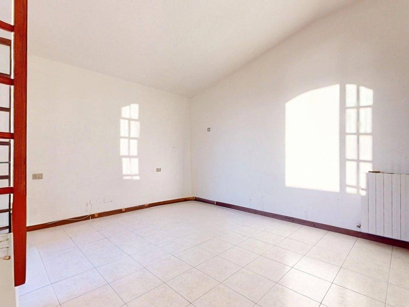 Al piano terra, un ampio salone doppio con camino a legna, la cucina abitabile e un bagno compongono la zona giorno, circondata da una terrazza loggiato che abbraccia il piano e affaccia sul giardino.