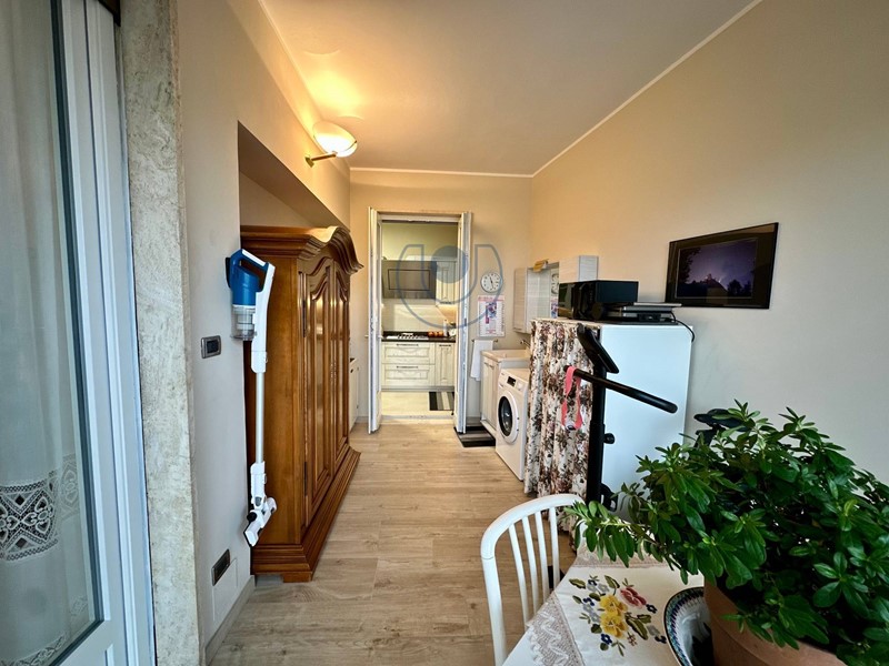 La zona giorno prosegue con un tinello spazioso e con una cucina recentemente rinnovata, entrambi affacciati sul terrazzo verandato, una vera estensione della casa. Qui è possibile godere di una vista straordinaria durante tutto lanno, immersi in luce naturale e panorami che cambiano con le stagioni.