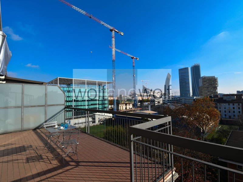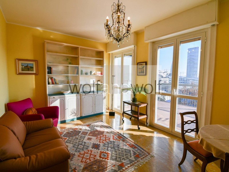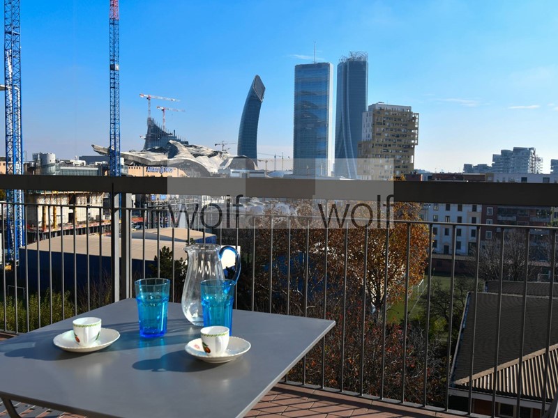 Appartamento composto da : ingresso, soggiorno con doppia apertura sul grande terrazzo vivibile con vista sulle Tre Torri di City Life, cucina semi - abitabile con balcone, due camere da letto e bagno finestrato con doccia.