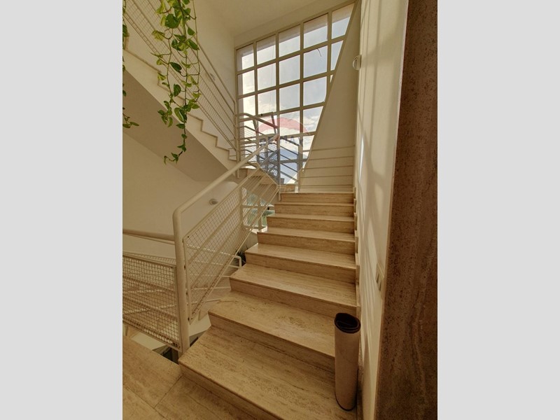 L'appartamento si trova al primo piano, accessibile tramite tre rampe di scale illuminate da una grande vetrata che dona luminosità agli spazi comuni.