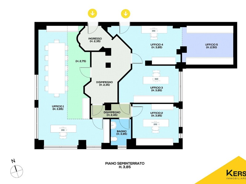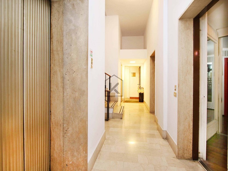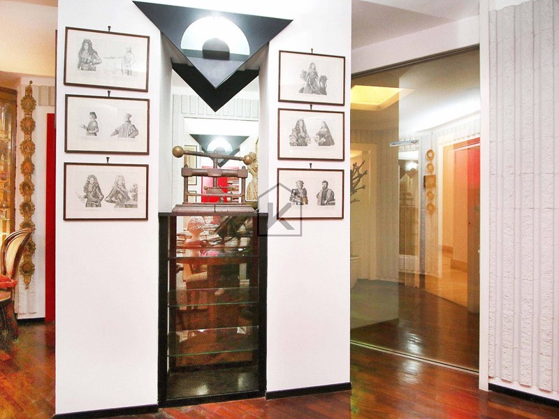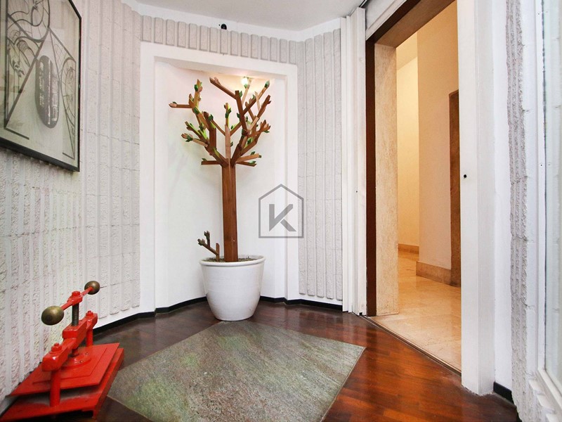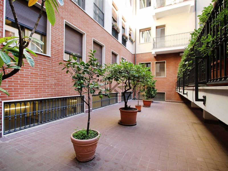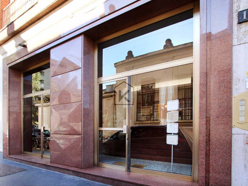 In raffinato contesto privato, hall dingresso elegante, servizio di portineria e finiture di qualità, l'immobile è ubicato nell'area interna dello stabile con una tripla esposizione SUD/EST/OVEST su ordinati e curati spazi condominiali caratterizzati da tranquillità e riservatezza. L'immobile (H.3,85), caratterizzato da abbassamenti che donano unatmosfera elegante, professionale ed accogliente, dispone di un doppio ingresso - portoncino blindato e porta scorrevole in vetro.
