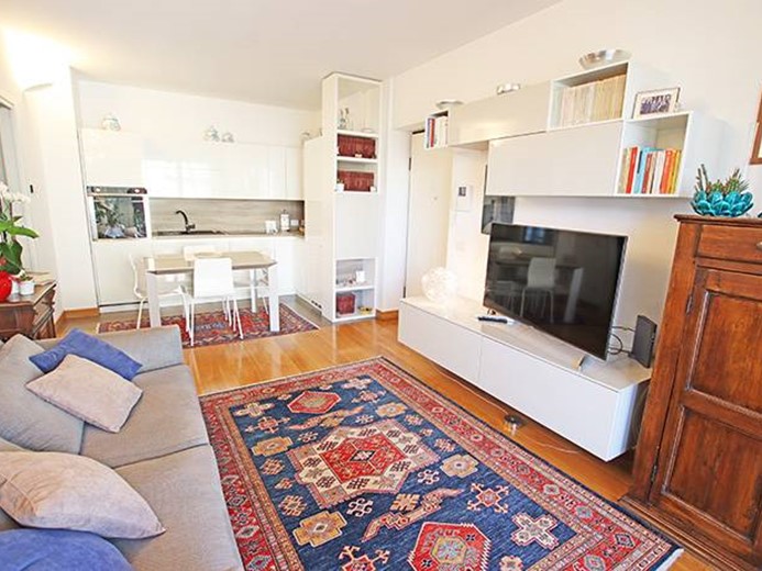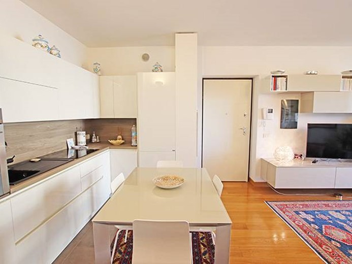 L'appartamento si trova in perfette condizioni dotato di riscaldamento e raffrescamento a pavimento, grandi porte finestre a taglio termico con accesso alla terrazza, pavimentazioni in parquet e moderno gres nel bagno, tapparelle motorizzate dotate di zanzariere, tutti i comfort di ultima generazione, la terrazza è totalmente coperta e dotata di irrigazione automatica e tendoni elettrici da esterno di alta qualità.