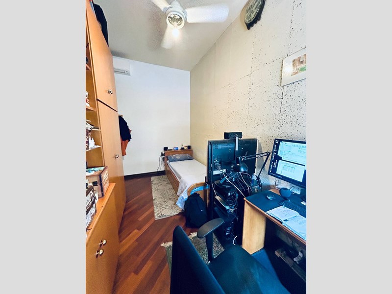 Il disimpegno separa la zona giorno dalla zona notte, composta da due camere da letto: una matrimoniale con balcone e una singola. Il bagno principale è finestrato, garantendo luce naturale e ventilazione. Un comodo ripostiglio completa l'interno dell'appartamento. Tra le dotazioni troviamo doppi vetri e aria condizionata per il massimo comfort.
