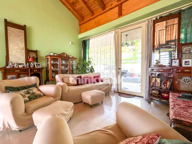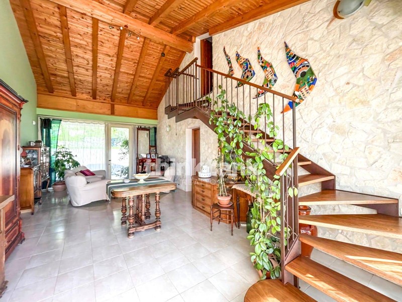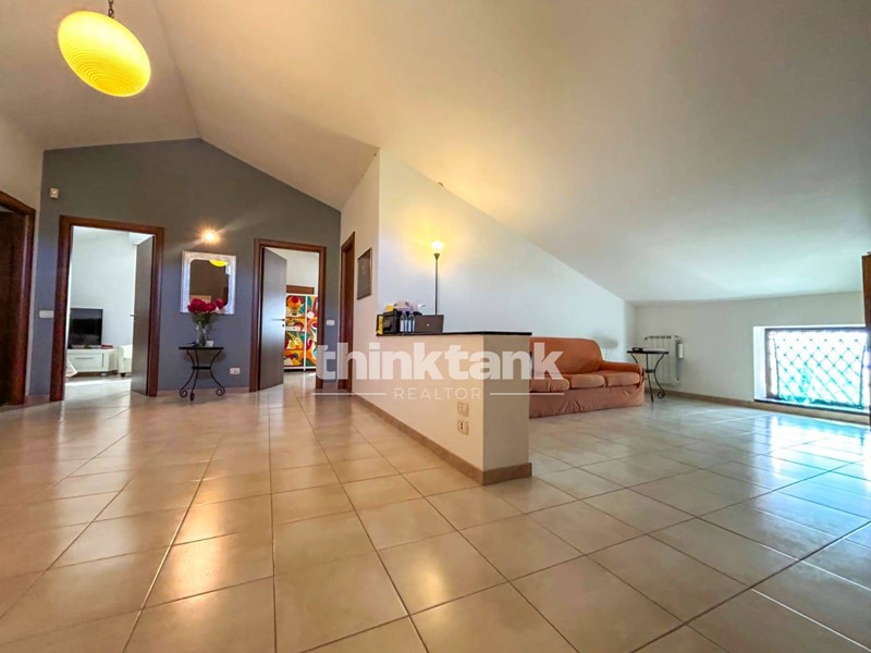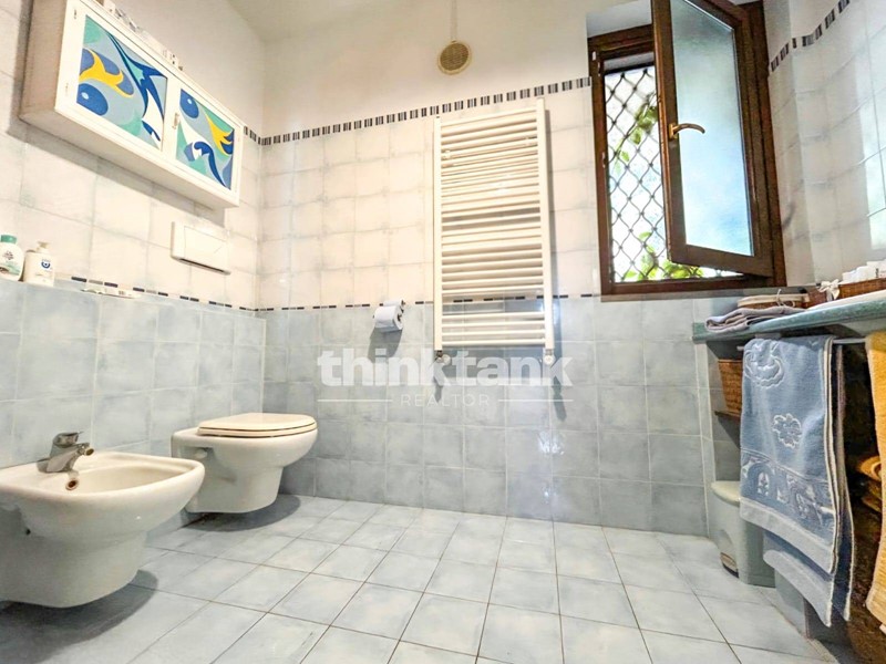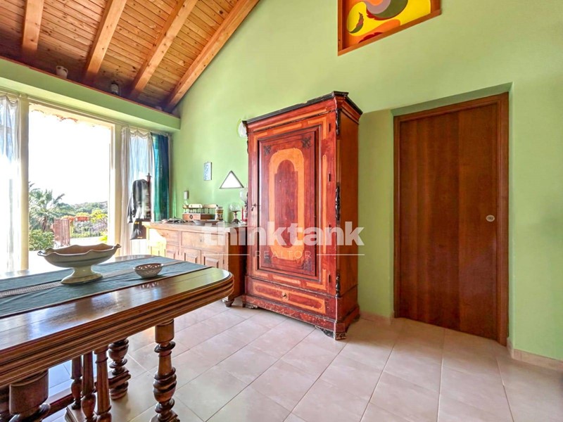 La villa dispone di 305 m² calpestabili distribuiti su due livelli e suddivisi in più unità abitative indipendenti.