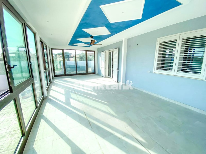 Il secondo appartamento è altrettanto spazioso e confortevole, con la possibilità di valorizzare il grande spazio esterno per la realizzazione di una piscina privata. Questo appartamento dispone di unampia cucina, tre camere da letto, un bagno funzionale e una pratica lavanderia, rendendo la soluzione ideale per famiglie o per chi cerca una seconda residenza al mare. Entrambi gli appartamenti godono di un terrazzo panoramico, perfetto per momenti di relax con vista sul mare o per cene allaperto durante le sere estive.
