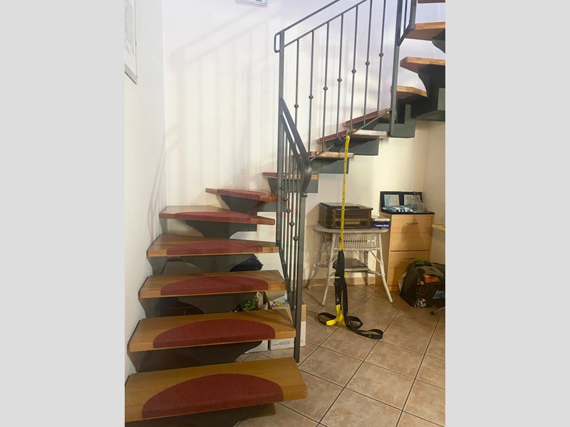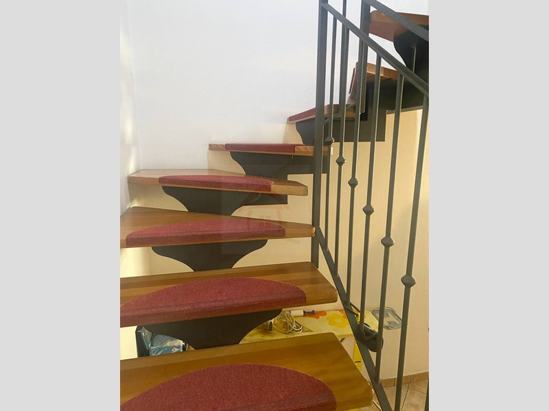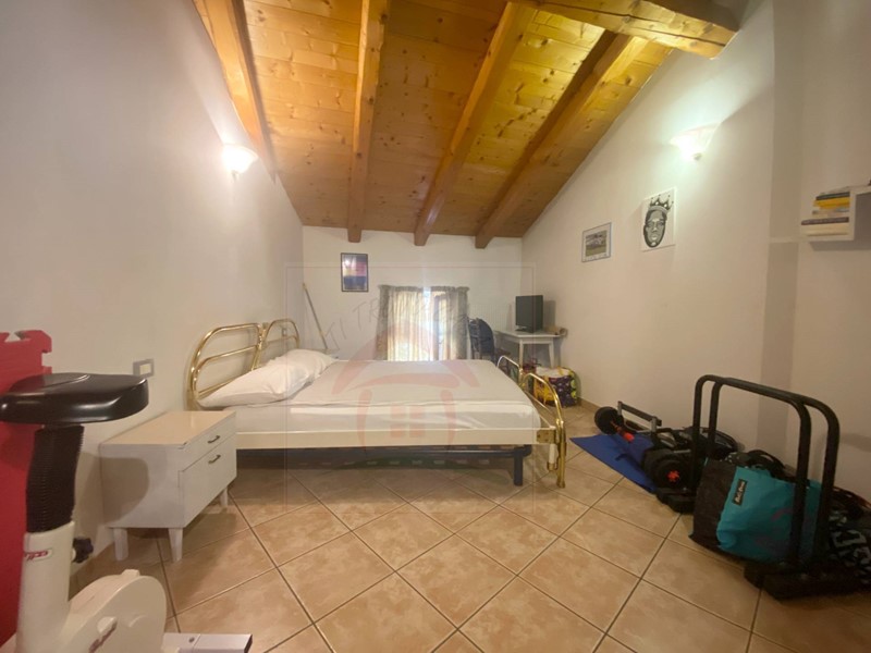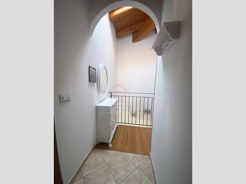 Le scale interne, su cui dà luce una velux, conducono al livello superiore dove sono presenti un bagno finestrato di generose dimensioni ed una camera matrimoniale dotata di cabina armadio.