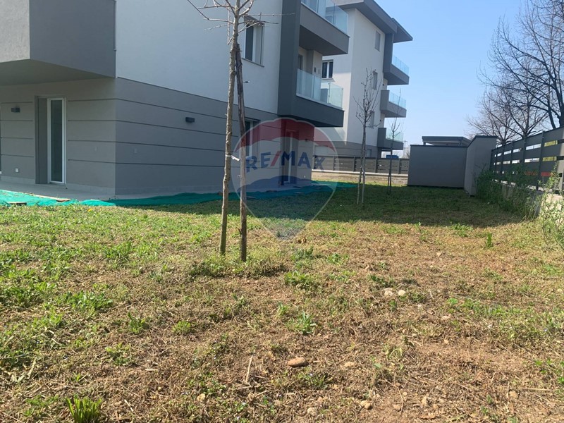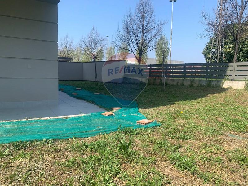 COMPOSIZIONE: Lunità immobiliare libera sui quattro lati è situata al piano terra di una palazzina di 8 unità immobiliari, vi si accede da un ingresso pedonale comune che porta al vano scale completo di ascensore, esposizione est-nord-ovest e giardino esclusivo sui tre lati, Così composta: ingresso direttamente nella zona living-cucina spaziosa e luminosa di 46 mq., affacciata direttamente con grandi vetrate sul giardino che consentono di godere al meglio dello spazio esterno. Tramite disimpegno si accede alla zona notte dove si trovano il bagno , due camere ed una ampia camera matrimoniale con bagno padronale, tutti i locali hanno affaccio sull'ampio giardino esclusivo.