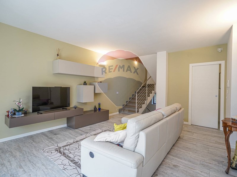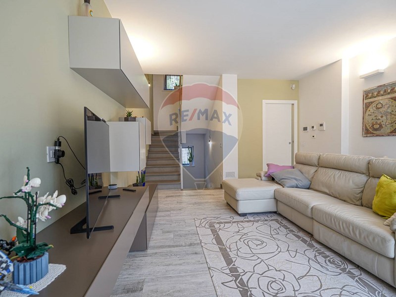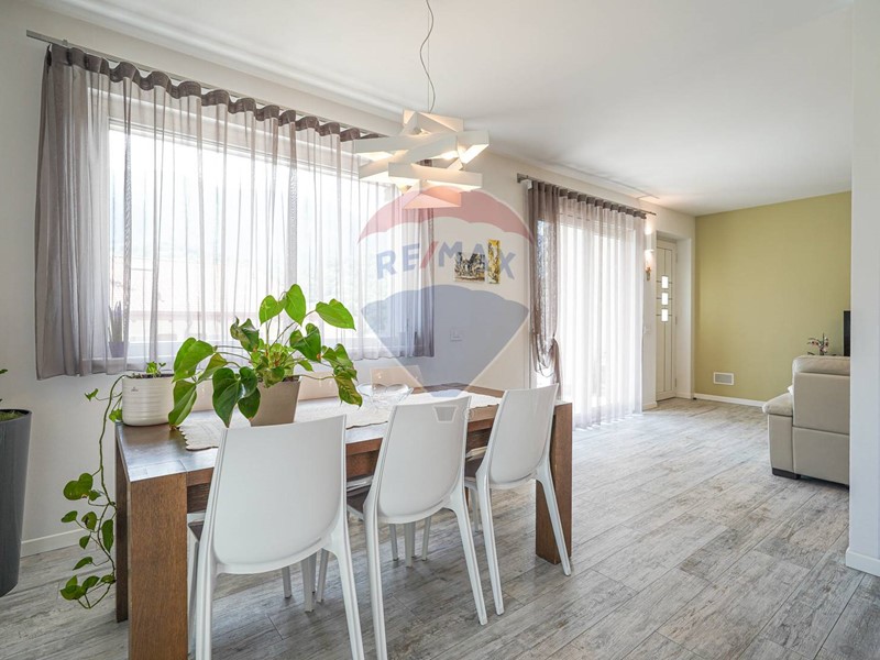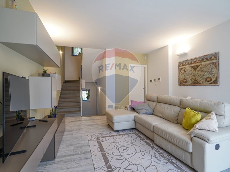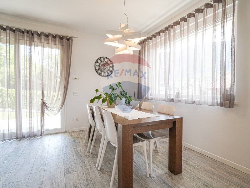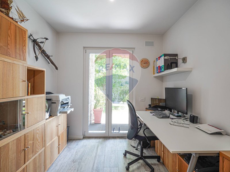 Al piano terra: luminoso soggiorno con cucina e zona pranzo open-space, ampie vetrate sul porticato e giardino, disimpegno con armadiatura su misura, locale studio/camera e bagno di servizio.