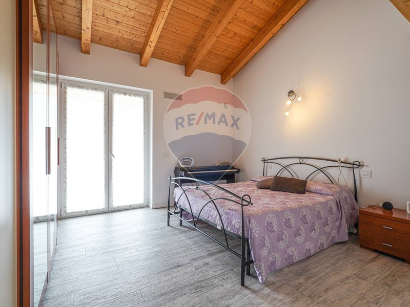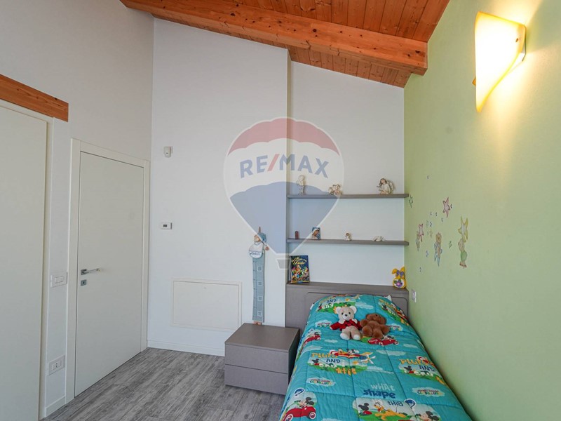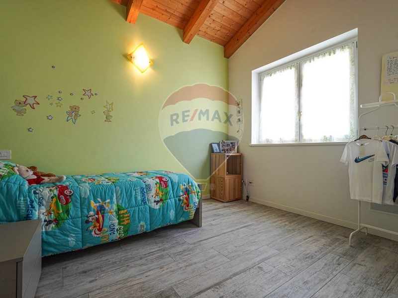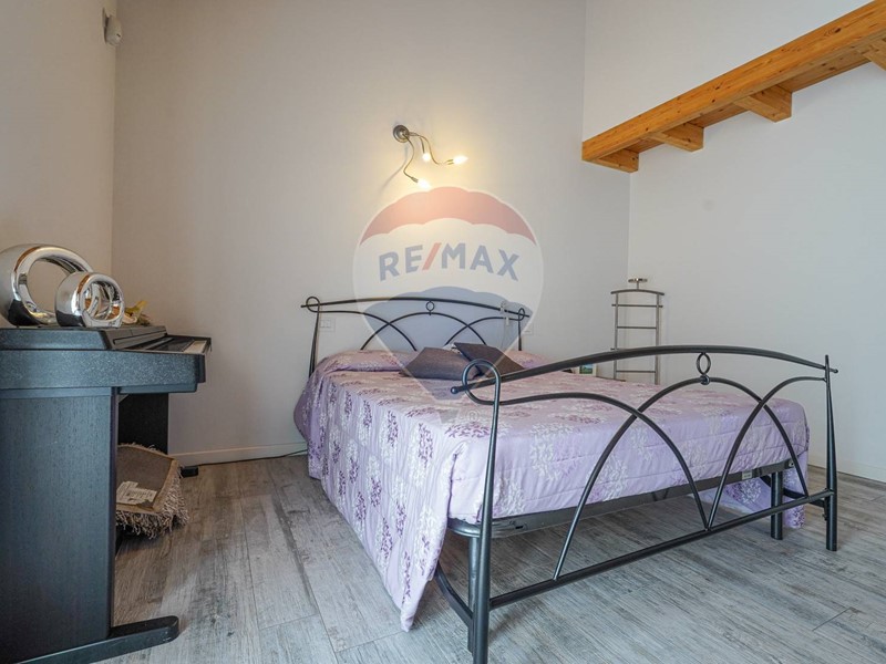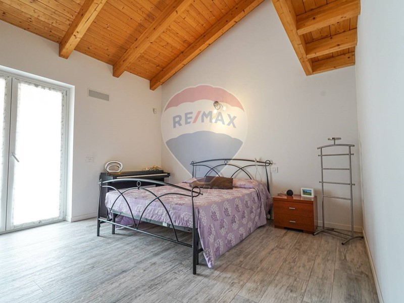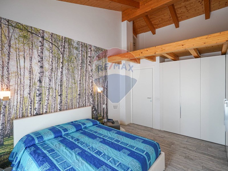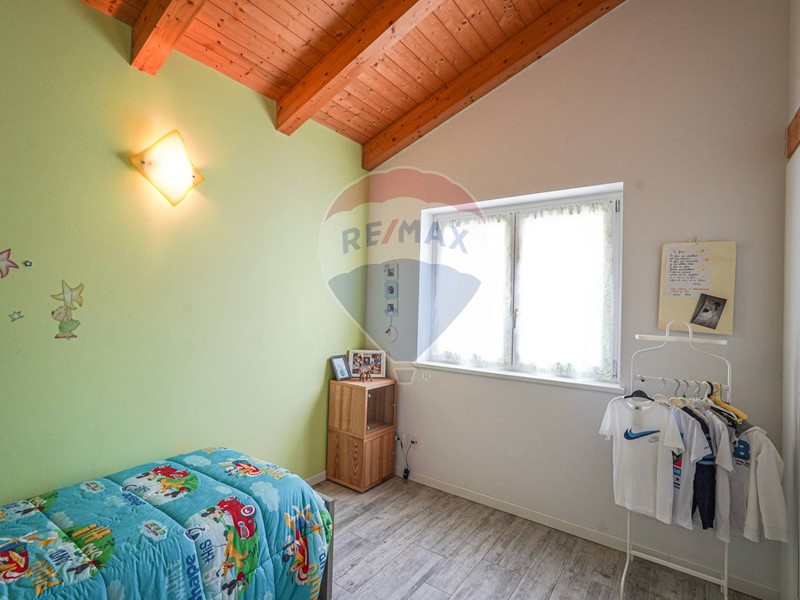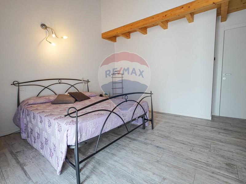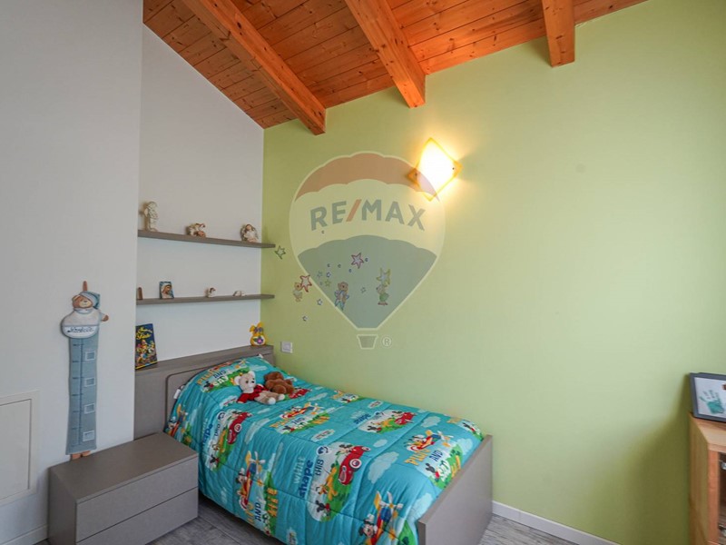 Al piano primo: tre camere da letto con travi a vista, bagno, disimpegno con armadiatura e balcone panoramico. La camera padronale è dotata di soppalco in legno, ideale come ripostiglio o zona relax.