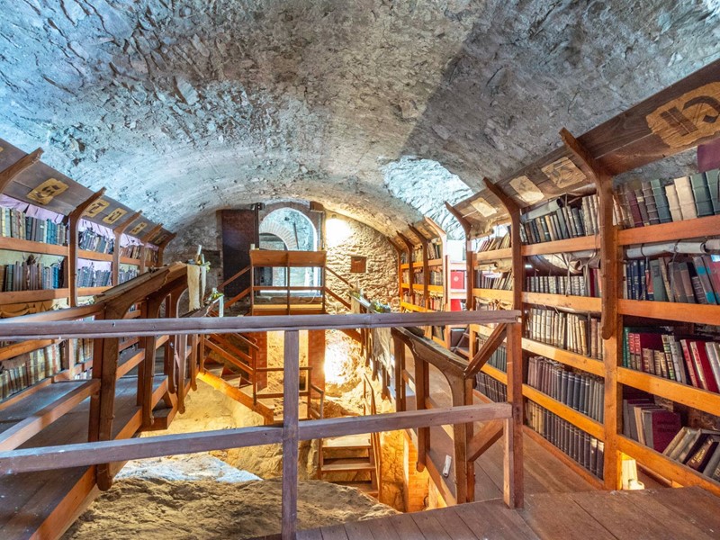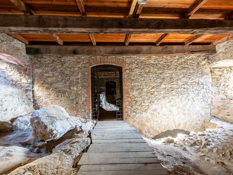 Seguendo il profilo dello sperone roccioso, il castello disegna un quadrilatero con quattro torri cilindriche e un mastio quadrato: un impianto difensivo che, ancora oggi, regala uneccezionale esperienza percettiva grazie al camminamento di ronda restaurato con le originarie caditoie. I livelli inferiori custodiscono le antiche cantine con pavimenti in pietra e travature lignee, ambienti scenografici dove affiora la roccia madre, perfetti per una vinoteca dautore o per percorsi espositivi.
