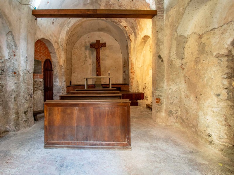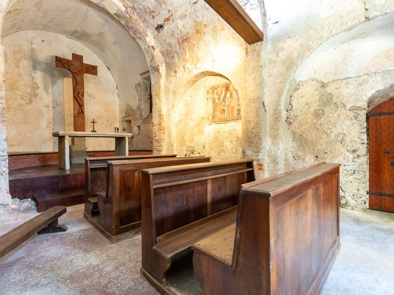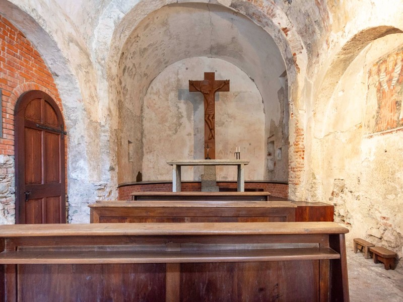 Nel cortile principale si erge la cappella medievale, con affreschi quattrocenteschi, tra cui un San Cristoforo attribuito a Giacomino da Ivrea, e soggetti devozionali lungo la navata unica: un patrimonio storico-artistico che arricchisce lofferta culturale della proprietà e la rende elettiva per cerimonie, concerti da camera e mostre.