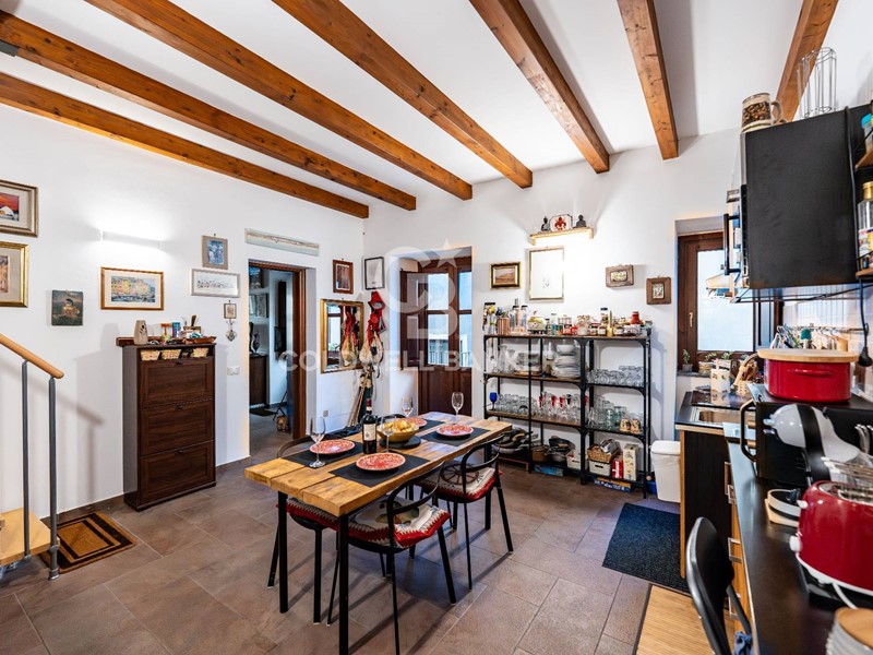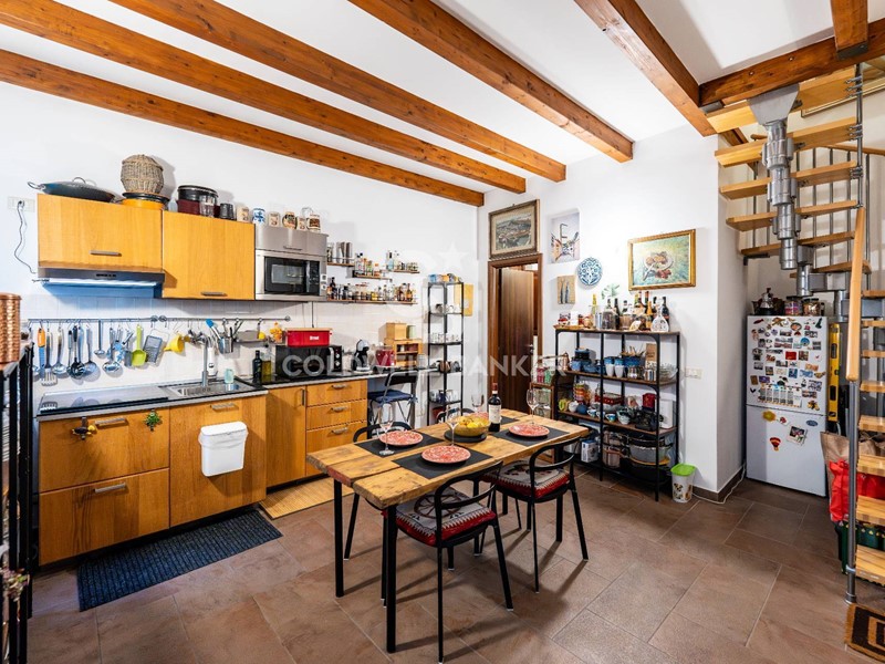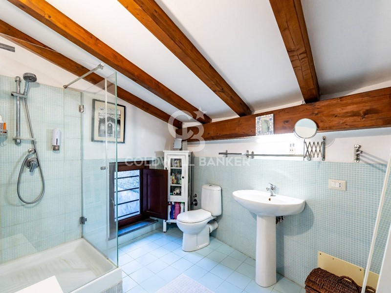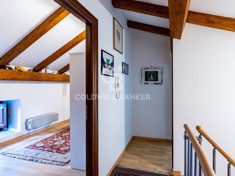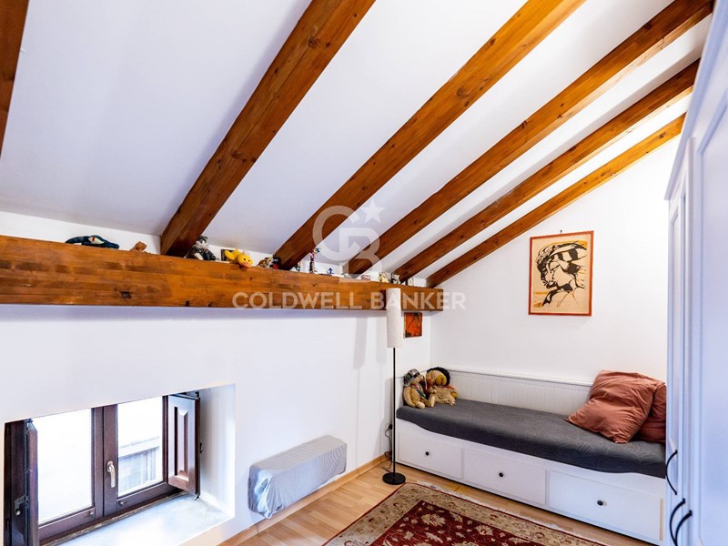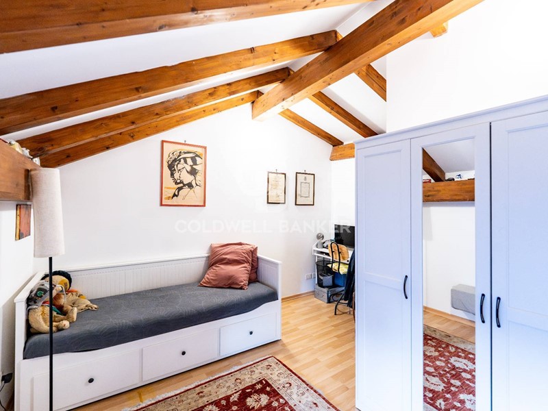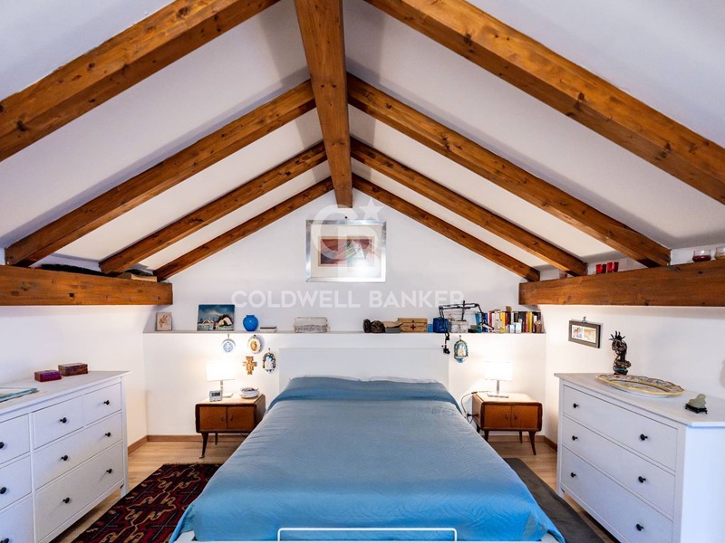 Al secondo livello, raggiungibile tramite una scala interna in legno e acciaio, si trovano due camere da letto entrambe finestrate e un ulteriore e comodo ripostiglio, anchesso finestrato. Il piano superiore presenta un suggestivo tetto a vista con travi e doghe in legno, curatissimo nei dettagli.