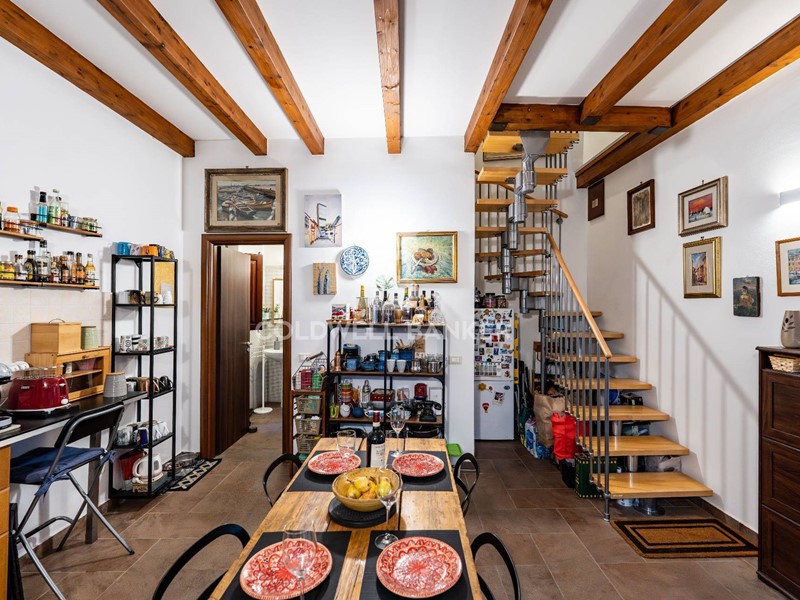 Al primo livello troviamo un ingresso su soggiornocucina ideale per accogliere gli ospiti, una zona salone con affaccio interno tramite balcone, un comodo bagno con doccia e un ripostiglio.