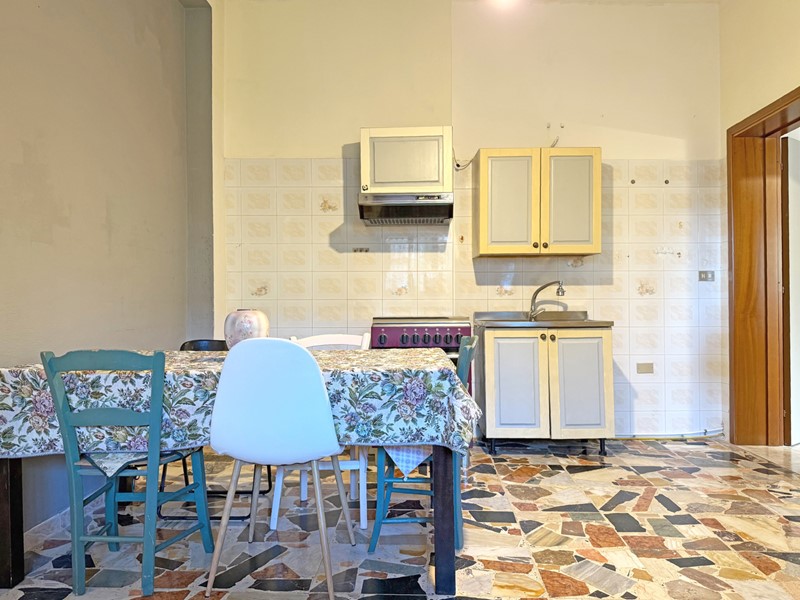 L'immobile è composto da ingresso, soggiorno, cucina con camino, ripostiglio e bagno al piano terra e tre camere, balcone, disimpegno e bagno al piano primo.