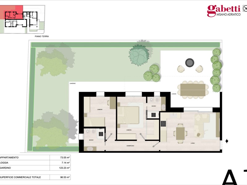 L'appartamento A1 è stato pensato per chi sogna una vita in perfetta sintonia con la natura, senza rinunciare al design contemporaneo. La luminosa zona giorno si apre su un ampio giardino privato, che diventa un'estensione naturale dell'ambiente interno: il luogo ideale per iniziare la giornata con una colazione al sole o per ospitare cene estive in piena intimità. La zona notte ,separata da un disimpegno, è composta da un bagno, una camera singola e una suite matrimoniale conbagno privato.