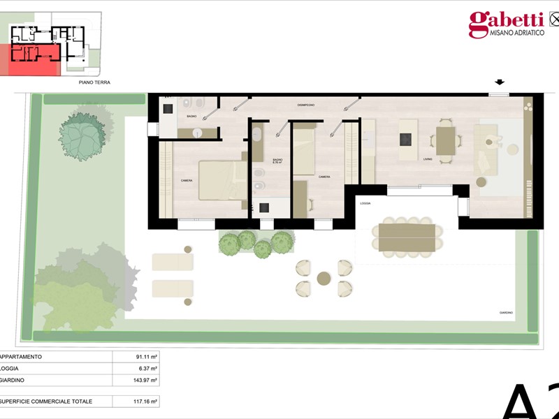 L'appartamento A2 incarna una visione sofisticata della vita a pochi passi dal mare, dove gli spazi generosi sono valorizzati da un design attento ai dettagli. La vita si svolge tra un interno raffinato e un esterno che ne è la naturale continuazione, in un flusso armonioso di luce e comfort. La zona notte ,separata da un disimpegno, è composta da una camera matrimoniale, una camera singola e due ampi bagni.