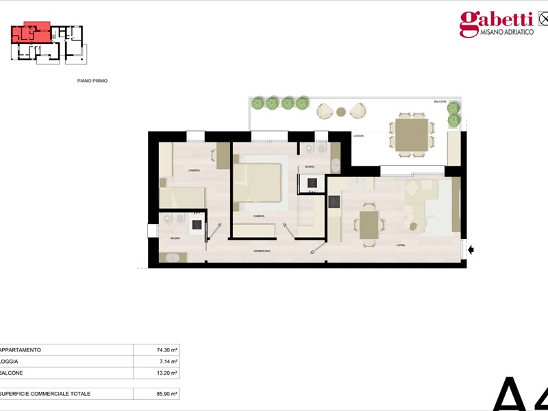 Un appartamento che gioca con la luce e le prospettive, offrendo il comfort di uno spazio raccolto ed elegante. L'appartamento A4, situato al primo piano, è una soluzione dove il design contemporaneo incontra la vivibilità in ogni stagione. La generosa zona giorno si affaccia su un ampio balcone in parte loggiato, un'estensione protetta e soleggiata della casa.