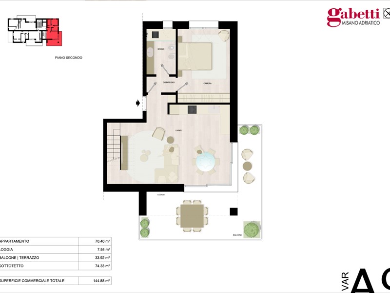L'Appartamento A9 non è solo una casa, ma un progetto da plasmare su misura. Al piano principale, potete scegliere la soluzione che si adatta perfettamente al vostro stile di vita, mentre il piano superiore vi regala un mondo di possibilità sotto le travi del sottotetto, culminante in un terrazzo privato che cattura l'orizzonte.