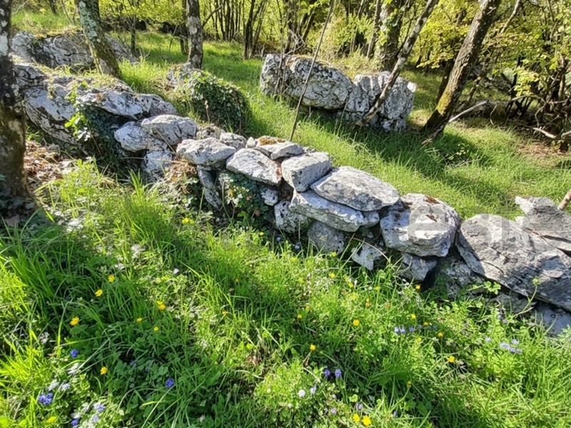 BORGO GROTTA GIGANTE - In prossimità del paese proponiamo 460 mq di terreno agricolo E5. Conformazione pianeggiante con base erbosa, alcuni alberi alto fusto e tipici arbusti del carso.