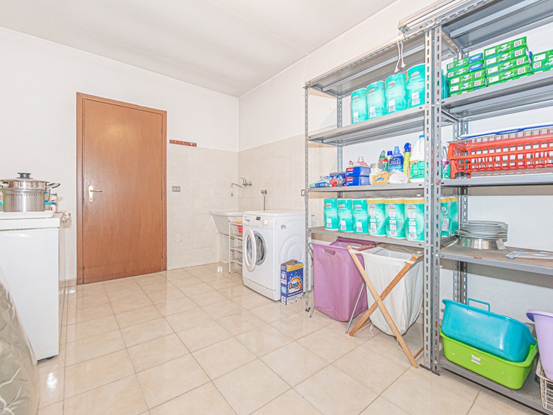 Al piano interrato l'unità immobiliare dispone di una tavernetta, una lavanderia, una cantina, un box auto e due posti auto.