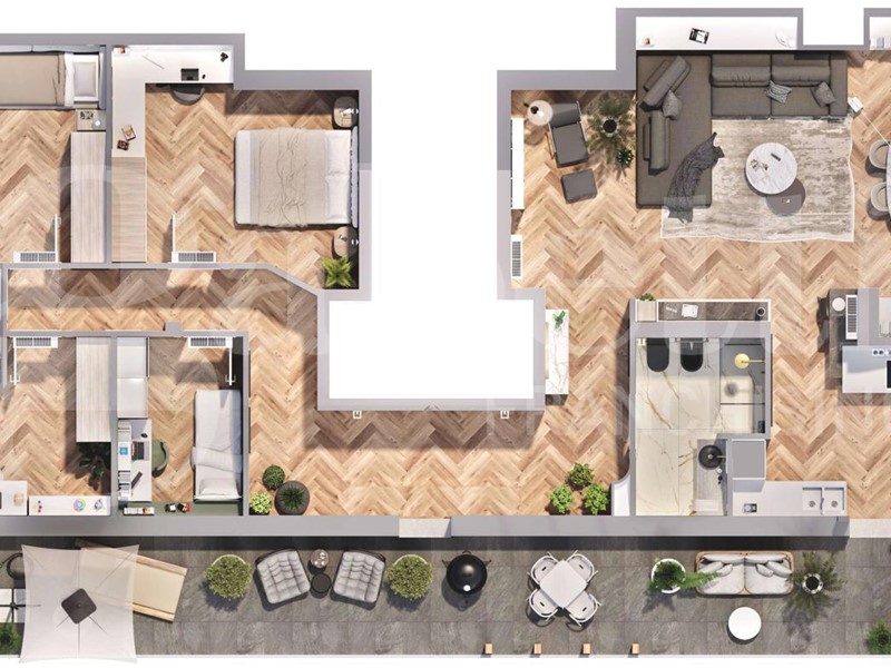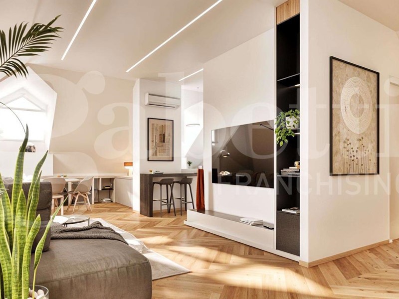 Con i suoi 170 mq commerciali, questo attico è stato progettato per offrire spazi ampi, luminosi e funzionali, con una divisione interna che garantisce privacy e comfort assoluto.