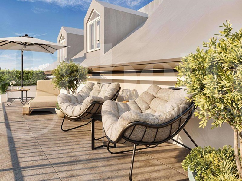 ? Terrazzo esclusivo di quasi 40 mq, accessibile da cucina, disimpegno e una camera da letto: uno spazio unico, sospeso sopra i tetti e i pini, dove godere di tramonti indimenticabili e cene all'aperto.