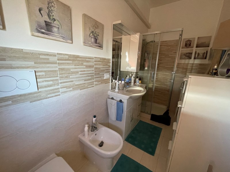 Rif.200 In elegante condominio Attico (7° Piano con ascensore) appartamento composto da: salone con balcone Vista Campagna, soggiorno con cucina e terrazza Vista Mare, bagno, ripostiglio, tre camere di cui una con bagno privato. Al piano terra cantina, ampio garage e posto auto. Ampio giardino condominiale.