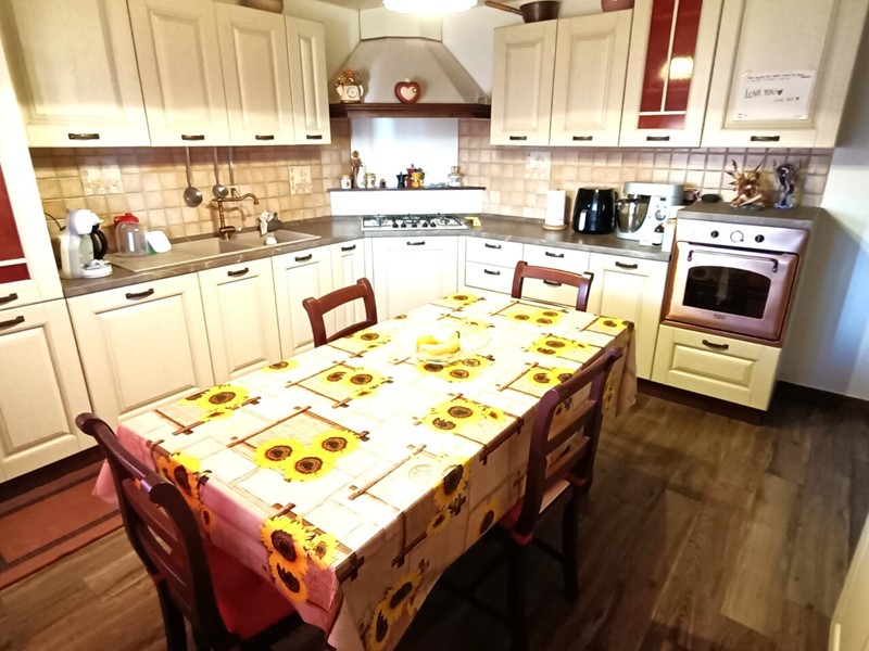 L'abitazione si sviluppa su due livelli ed al piano terra è così composta: ingresso, grande soggiorno, cucina separata e abitabile, bagno completo con finestra, zona lavanderia. Al piano primo ci sono tre camere da letto matrimoniali ed un bagno finestrato. Una delle camere matrimoniali è dotata di una comoda cabina armadio.