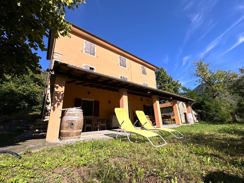Villa libera su quattro lati immersa nel verde, con vista panoramica sulle montagne e composta da vani sei oltre terreno circostante con alberi da frutto ed ulivi.