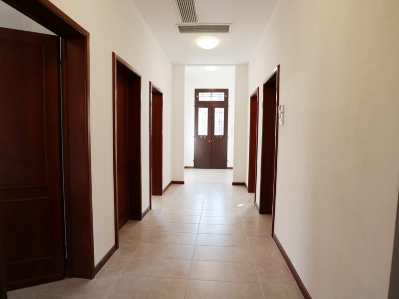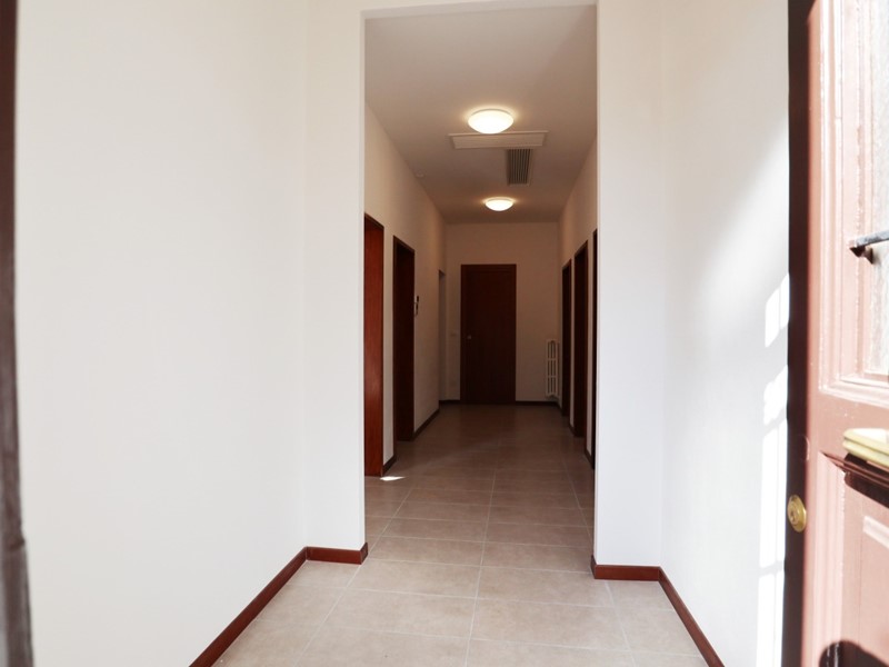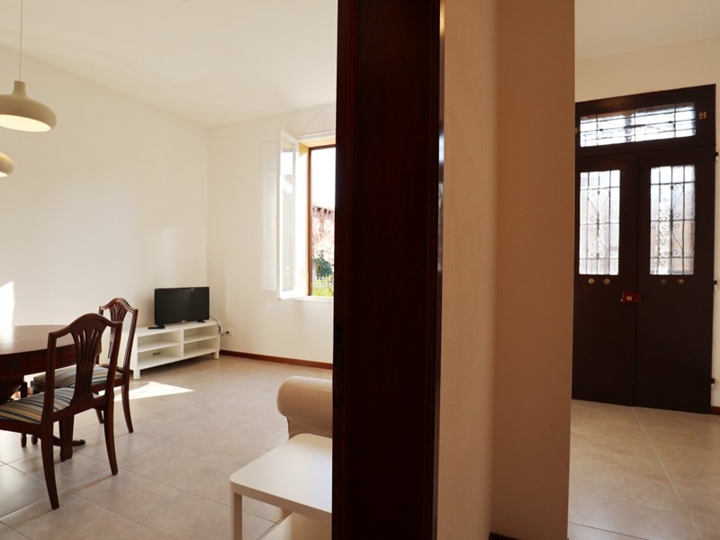 L'appartamento è al piano rialzato ed è composto da ingresso indipendente, cucina, ampia sala, ripostiglio, due bagni e 3 camere: una singola, una matrimoniale (locata ad un ragazzo studente) e una doppia (locata a due ragazzi studenti), oltre a giardino privato con possibilità di parcheggio bici/motorini.