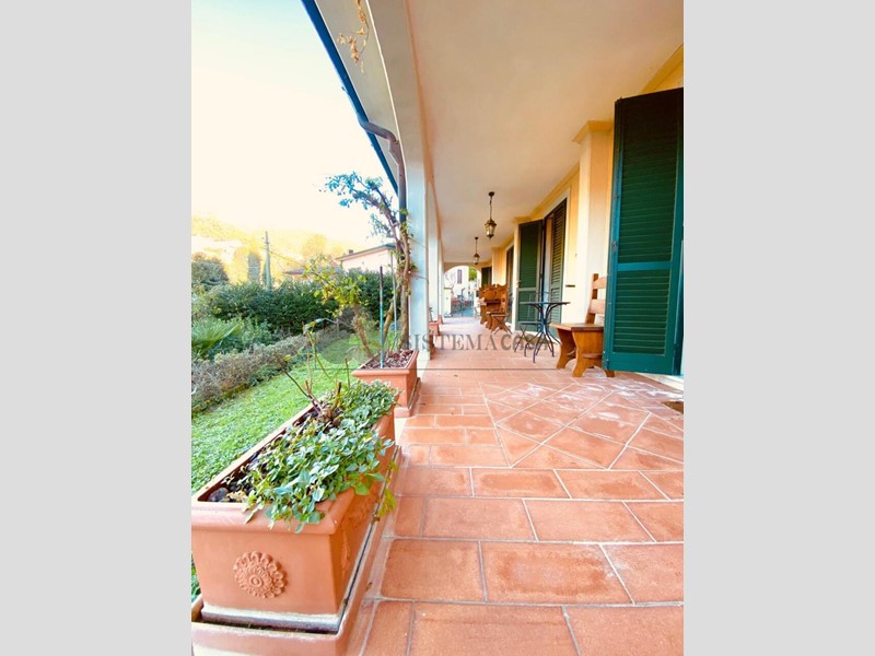 A Casano, nel punto in cui la strada si apre e la luce cambia, sorge una villa indipendente che domina il paesaggio con eleganza e discrezione. L’accesso è comodo, direttamente dalla provinciale, e introduce subito in un contesto sorprendente: un ampio piazzale in pietra, un portico accogliente e un terreno che avvolge la casa fino a trasformarsi in un bosco privato.