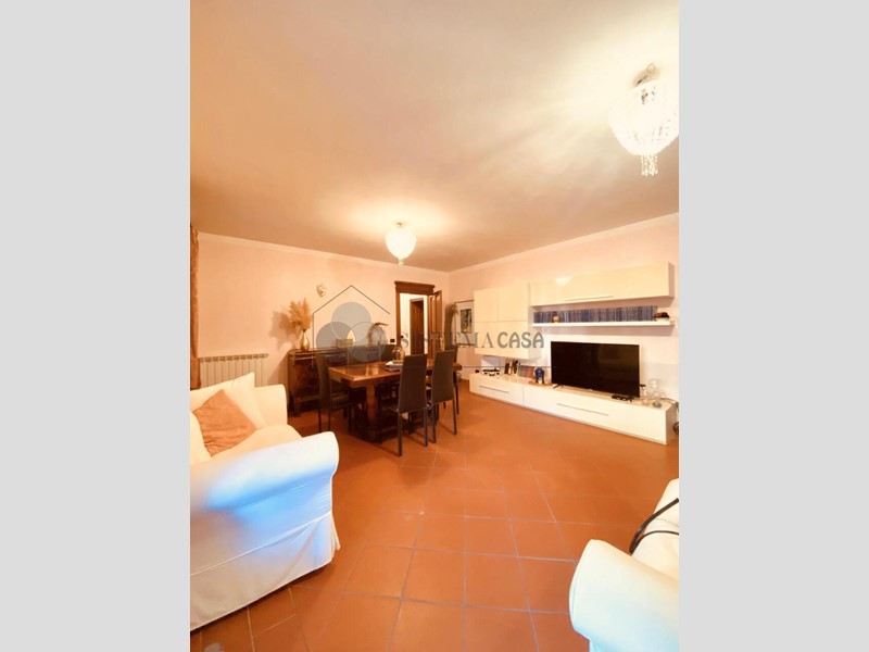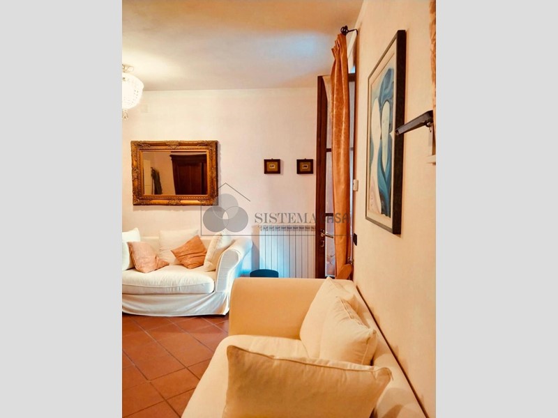 Al piano terra si trova l’appartamento padronale: un portico elegante accompagna all’ingresso dell’abitazione principale, un grande cinque vani con pavimenti in cotto originale, infissi artigianali in legno e un camino in marmo che aggiunge fascino e autenticità. Gli ambienti sono ampi, luminosi e ben distribuiti: zona giorno ariosa, cucina rustica, camere spaziose e due bagni in stile classico.