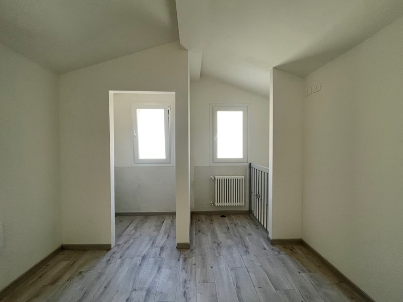 L'immobile è disposto su 2 livelli ed è caratterizzato dall'ingresso indipendente su luminosissimo soggiorno con parete a cottura, caratterizzato dal solaio in legno bianco a vista, una splendida scala a giorno che collega i piani, dalla quale si accede alla comoda camere da letto con elegante bagno.