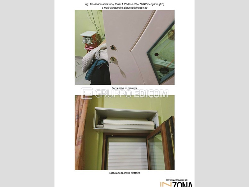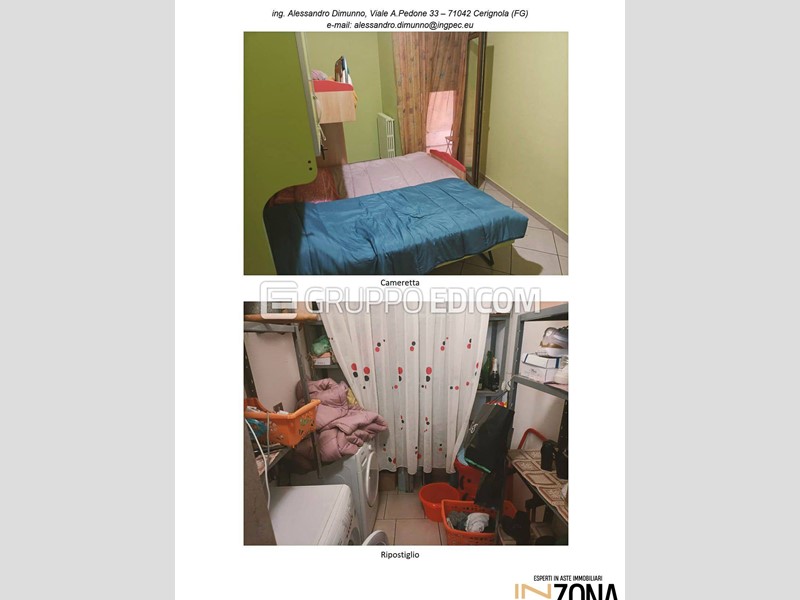 ASTA ---- PREZZO and euro; 17.114,18 --- RISPARMIO and euro;55.000\nAppartamento composto da tre camere, soggiorno cucina, corridoio, ripostiglio ed un bagno. E' provvisto di due balconi.\nL'appartamento sviluppa una superficie lorda di circa 103 mq.\nL'unità immobiliare appartiene alla Classe energetica and quot;D and quot;.\n\nData vendita\n05/02/2026 - 17:00\n\nPrezzo base\n and euro; 22.818,91\nOfferta minima\n and euro; 17.114,18\n\nTi piacerebbe comprare una casa all'asta ma non sai come fare perché non sei un esperto?\nContattaci per avere maggiori informazioni su questo immobile e su come poterlo acquistare in totale sicurezza.\nINZONA offre un servizio di ASSISTENZA TECNICO - LEGALE per l'acquisto di immobili in asta attraverso queste attività:\nPRIMA CONSULENZA: Appuntamento presso la nostra sede di Foggia, presso il Centro direzionale E9 in Via Donato De Leonardis, 2 - 71121 Foggia (FG), per offrire chiarimenti sulle aste ed ascoltare le tue esigenze immobiliari.\n- Mediazione creditizia\n- studio fattibilità per la partecipazione in asta con mutuo fino al 100%\n- Studio della perizia e della documentazione dell'immobile\n- Accertamenti catastali per eventuali abusi edilizi\n- Accompagnamento Visita Immobile\n- Disbrigo pratiche per la partecipazione all'asta (anche solo compilazione della domanda)\n- Rappresentanza Legale il giorno della vendita\n- Rilascio del decreto di trasferimento in tempi brevi\n- Assistenza per il Saldo Prezzo\n- Compilazione F24 per Tasse\n- Disbrigo Pratiche per Eventuale Sanatoria\n- Assistenza alla Consegna Immobile\n\nContattaci per avere maggiori informazioni sull'immobile e su come partecipare all'asta.\n\n\n