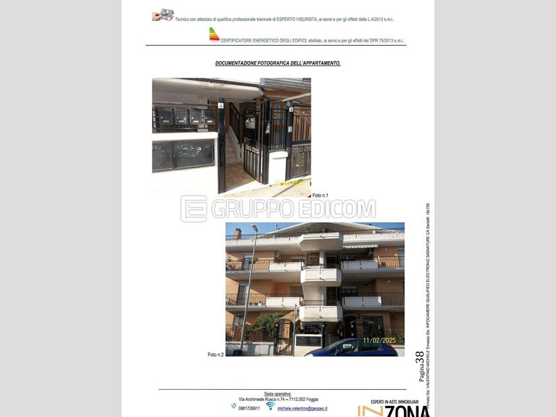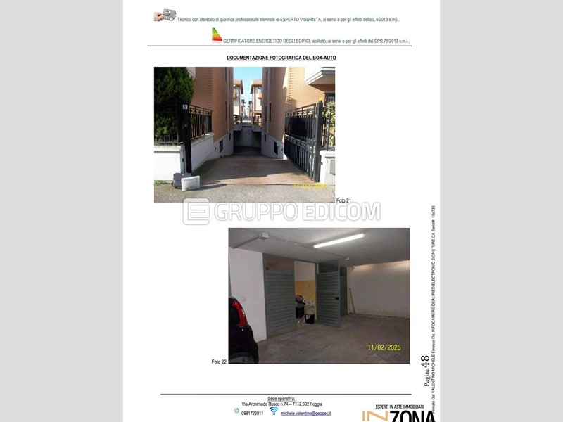 ASTA --- prezzo and euro;93.000,00 --- risparmio and euro;31.000\nBene n. 1\nAppartamento primo piano, scala B, interno 4, della superficie commerciale di mq 112, composto da ingresso/soggiorno, cucina, due camere letto, wc, ripostiglio, corridoio e due balconi. Presenti infiltrazioni. Classe energetica E.\nBene n. 2\nBox auto piano seminterrato di mq 15 commerciali, il qusul lato sinistro. Manca ascensore interno.\n\nData vendita\n22/01/2026 - 16:30\n\nPrezzo base\n and euro; 124.000,00\nOfferta minima\n and euro; 93.000,00\n\nTi piacerebbe comprare una casa all'asta ma non sai come fare perché non sei un esperto?\nContattaci per avere maggiori informazioni su questo immobile e su come poterlo acquistare in totale sicurezza.\nINZONA offre un servizio di ASSISTENZA TECNICO - LEGALE per l'acquisto di immobili in asta attraverso queste attività:\nPRIMA CONSULENZA: Appuntamento presso la nostra sede di Foggia, presso il Centro direzionale E9 in Via Donato De Leonardis, 2 - 71121 Foggia (FG), per offrire chiarimenti sulle aste ed ascoltare le tue esigenze immobiliari.\n- Mediazione creditizia\n- studio fattibilità per la partecipazione in asta con mutuo fino al 100%\n- Studio della perizia e della documentazione dell'immobile\n- Accertamenti catastali per eventuali abusi edilizi\n- Accompagnamento Visita Immobile\n- Disbrigo pratiche per la partecipazione all'asta (anche solo compilazione della domanda)\n- Rappresentanza Legale il giorno della vendita\n- Rilascio del decreto di trasferimento in tempi brevi\n- Assistenza per il Saldo Prezzo\n- Compilazione F24 per Tasse\n- Disbrigo Pratiche per Eventuale Sanatoria\n- Assistenza alla Consegna Immobile\n\nContattaci per avere maggiori informazioni sull'immobile e su come partecipare all'asta.\n\n\n