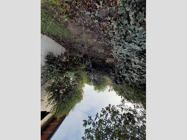 L’appartamento ha accesso attraverso le scale di collegamento esterne e si compone da cucina con camino, disimpegno, soggiorno, due camere da letto, un ripostiglio non finestrato e un servizio igienico. Circostante il fabbricato il resede pertinenziale recintato che comprende la viabilità di accesso al fabbricato, oltre che zone sistemate a verde con alberi di varia natura. È presente un’area urbana dove in prossimità insiste un manufatto in precarie condizioni manutentive e conservative. Il fabbricato è composto da un accesso pedonale e carrabile dalla Strada Provinciale 25. Gli infissi sono in alluminio. I pavimenti delle scale di ingresso, disimpegno e cucina sono in cotto, quelli del soggiorno e camere da letto in monocottura mentre quelli del bagno in mosaico.Si rimanda alla perizia estimativa per l’ulteriore descrizione dell’immobile.