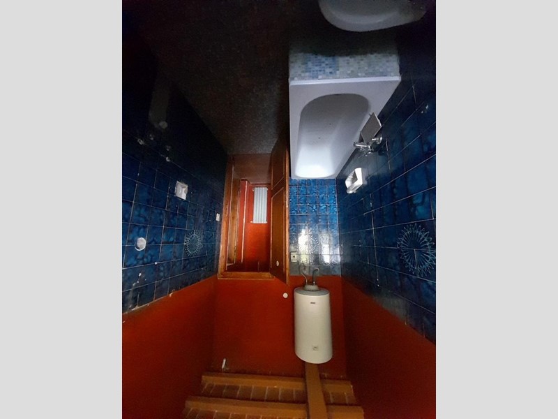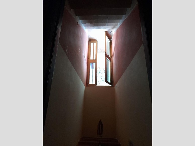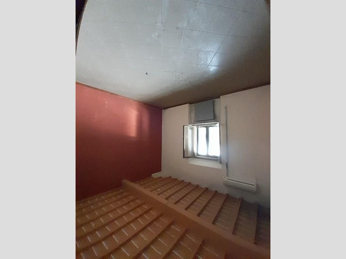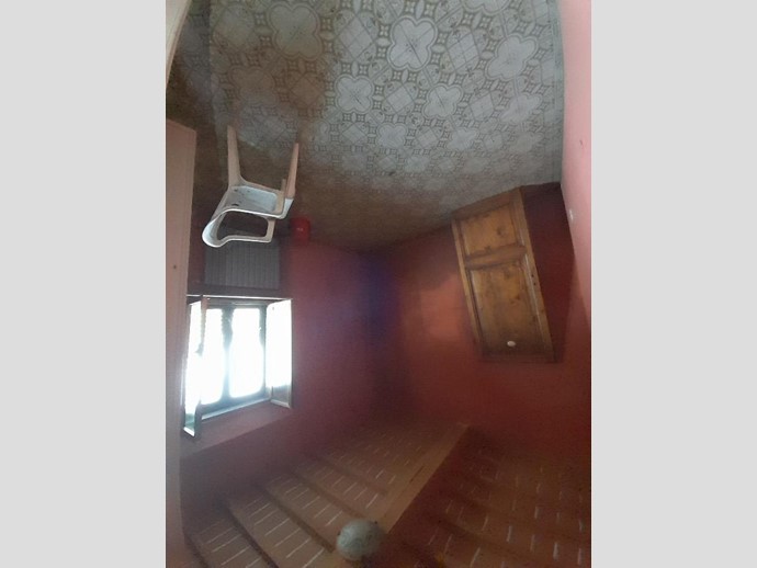 L’immobile ha accesso attraverso le scale di collegamento esterne e si compone da cucina con camino, disimpegno, soggiorno, due camere da letto, un ripostiglio non finestrato e un servizio igienico. Circostante il fabbricato il resede pertinenziale recintato, oltre zone sistemate a verde. Gli infissi sono in alluminio. I pavimenti delle scale di ingresso, disimpegno e cucina sono in cotto, quelli del soggiorno e camere da letto in monocottura mentre quelli del bagno in mosaico.