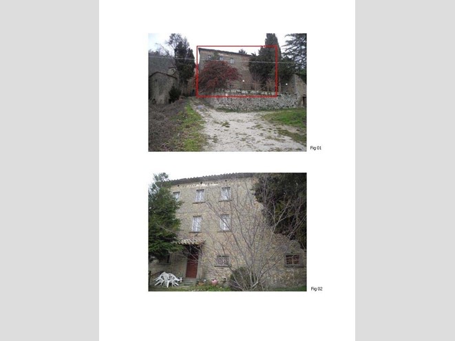 LOTTO UNICO: In Comune di Cortona, loc. Val di Vico, piena proprietà su fabbricato ad uso abitativo, di cui la parte più antica risale al XVIII sec., articolato in piano seminterrato, terra, primo e soffitte, per 423 mq, con aree scoperte di 423 mq. Il complesso è corredato da terreni boschivi, pascolo e in parte seminativi.