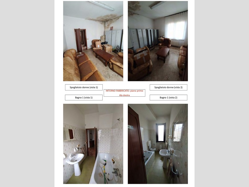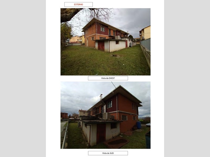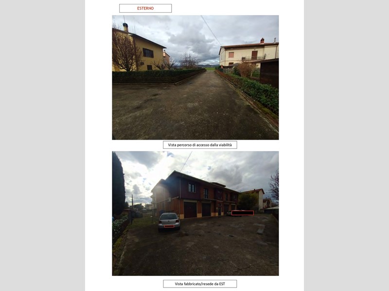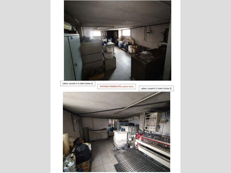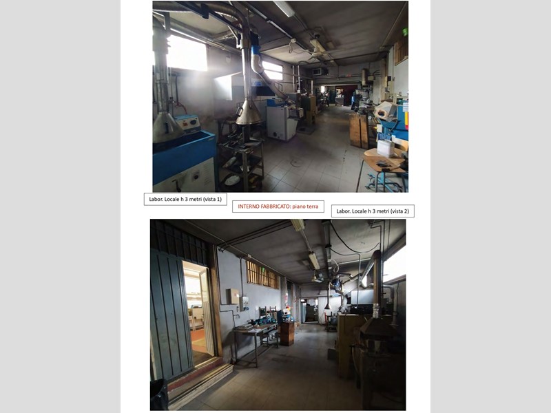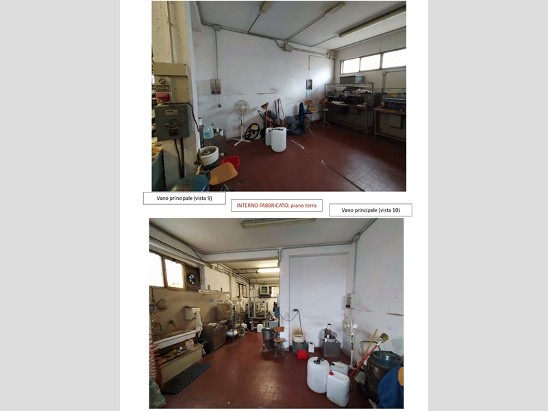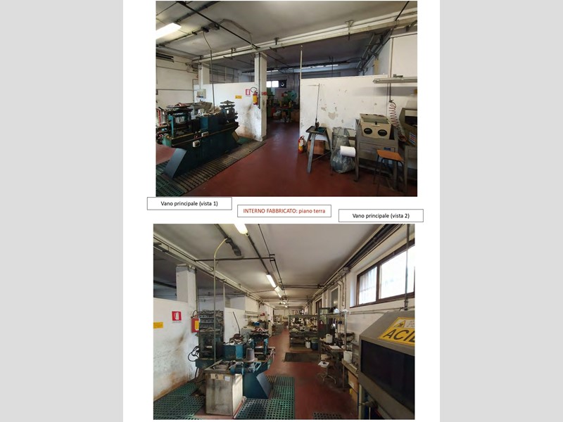 L’unità immobiliare in vendita per la piena proprietà è posta nel Comune di Civitella in Val di Chiana, frazione Pieve al Toppo, Via di Mugliano n. 33/3, immobile singolo articolato su due piani fuori terra collegati da scala interna, corredato da circostante resede scoperto esclusivo accessibile direttamente da passo carrabile a raso attestante sulla pubblica viabilità Strada Provinciale n. 21 a circa 200 metri dall’incrocio con la S.S.73 Senese Aretina, da dove poi prosegue verso Nord-Ovest uscendo dalla Frazione di Pieve al Toppo, collegandola con la più prossima frazione di San Giuliano in Comune di Arezzo.Fabbricato singolo edificato nel 1973/1974, articolato su due livelli agibili oltre a sottotetto parzialmente praticabile, tutti collegati verticalmente da scala a doppia rampa simmetrica inserita in apposito vano centrale accessibile dal lato Nord-Ovest a mezzo di portoncino di ingresso; lo sviluppo sia planimetrico che altimetrico è regolare, con caratteristiche tipologiche e formali comuni riscontrabili nell’edilizia comune, segnate da struttura portante mista a pareti perimetrali in muratura portante di blocchi artificiali di tufo e pilastri interni in calcestruzzo armato a sostegno dei soli carichi verticali; orizzontamenti in latero-cemento gettati in opera e copertura a padiglione con sottotetto praticabile per la parte ai lati del vano scala con altezza maggiore, realizzata con travi prefabbricati del tipo “Varese” intervallata da tavellonato in laterizio e solo ispezionabile per le estremità, eseguita a muretti a nido d’ape poggianti sul solaio sottostante. Le forature prospettiche sono regolari per distribuzione e hanno dimensioni variabili. Tutti i vari elementi esterni in aggetto quali balconi e gronde della copertura sono stati realizzati in calcestruzzo armato in opera, lasciato faccia a vista.Il resede pertinenziale di superficie catastale mq 1.155 è in parte tenuto a verde/prato e in parte coperto da pavimentazione in calcestruzzo corrispondente alla zona frontistante l’immobile e al percorso che lo collega alla viabilità; stessa finitura superficiale presenta il marciapiede tranne per il lato Nord-Est finito con piastrelle in gres. Perimetralmente l’area di proprietà è delimitata da muretto di recinzione sormontato da ringhiera metallica smaltata di semplice fattura e per porzione da pannellature in cemento.L’intero piano terra è adibito a laboratorio, attualmente ospita un’attività orafa, è accessibile direttamente dall’esterno da una porta carrabile metallica oppure attraverso un disimpegno collegato al vano scala, dal quale è possibile raggiungere anche i livelli superiori (piano primo e soffitte sottotetto). La superficie del corpo principale è occupata oltre che dal suddetto disimpegno, da un ufficio con attiguo vano separato con vetrate di sicurezza per le consegne, anch’esso accessibile direttamente dal vano scala, da un ampio locale laboratorio e da vani accessori concentrati nella parte Nord-Ovest, formati da un antibagno, tre piccoli servizi igienici e adiacente centrale termica/vano tecnico, accessibile esclusivamente dall’esterno attraverso porta metallica. L’altezza utile è di metri 3,42 (3,49 per la centrale termica). Dal vano principale è possibile accedere a quelli ricavati nel corpo a unico piano creato successivamente addossato nel lato Sud-Ovest del corpo principale, composti da un magazzino e un vano a estensione del laboratorio stesso, utilizzato sempre per la lavorazione del settore; l’altezza varia da metri 3,00 per la parte centrale a metri 2,00 per i due vani laterali.
